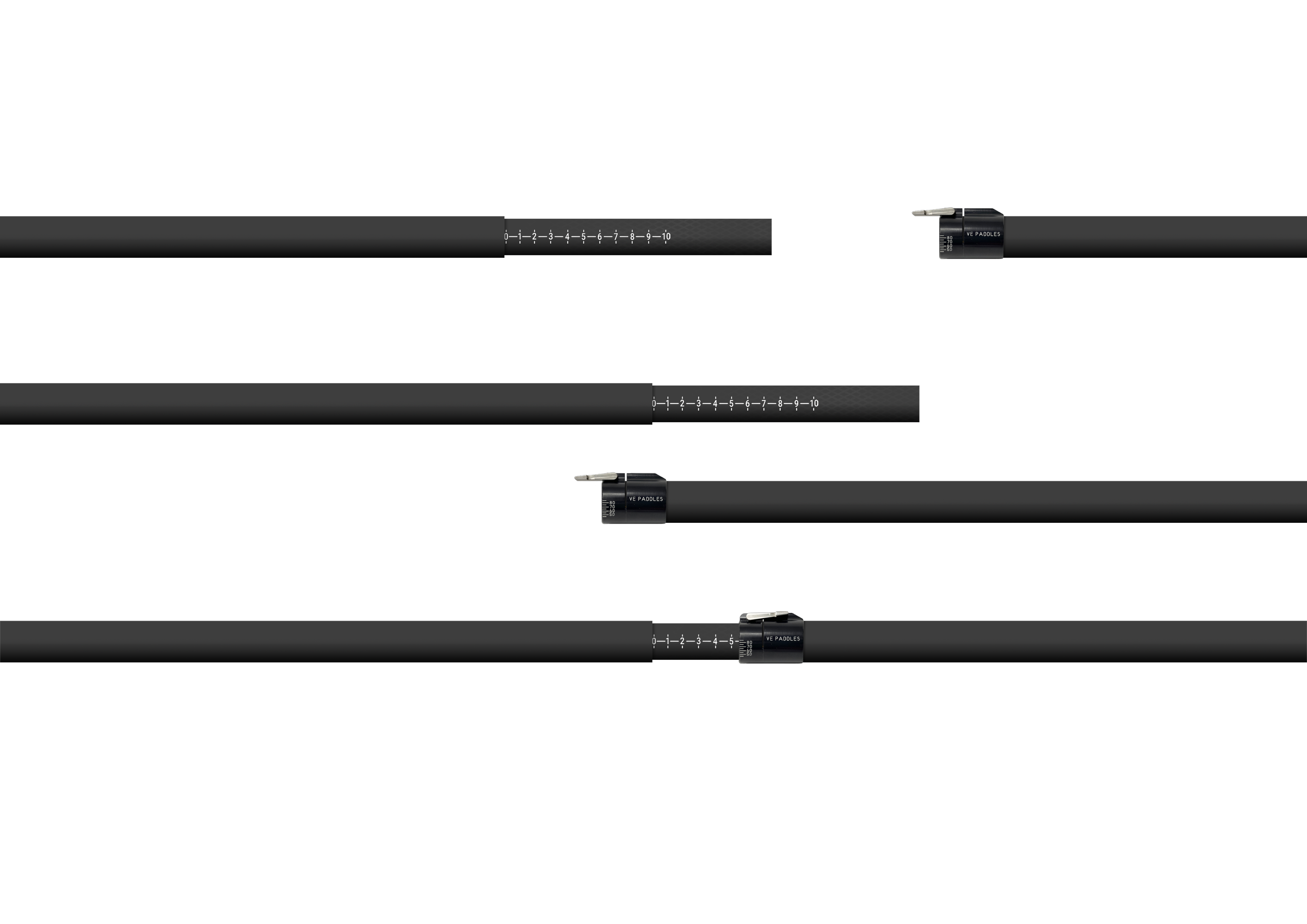 Standardně dodáváno jako dvoudílné pádlo, spojka umožňuje rychlé a snadné nastavení délky (až 10 cm), úhlu bez potřeby nářadí.