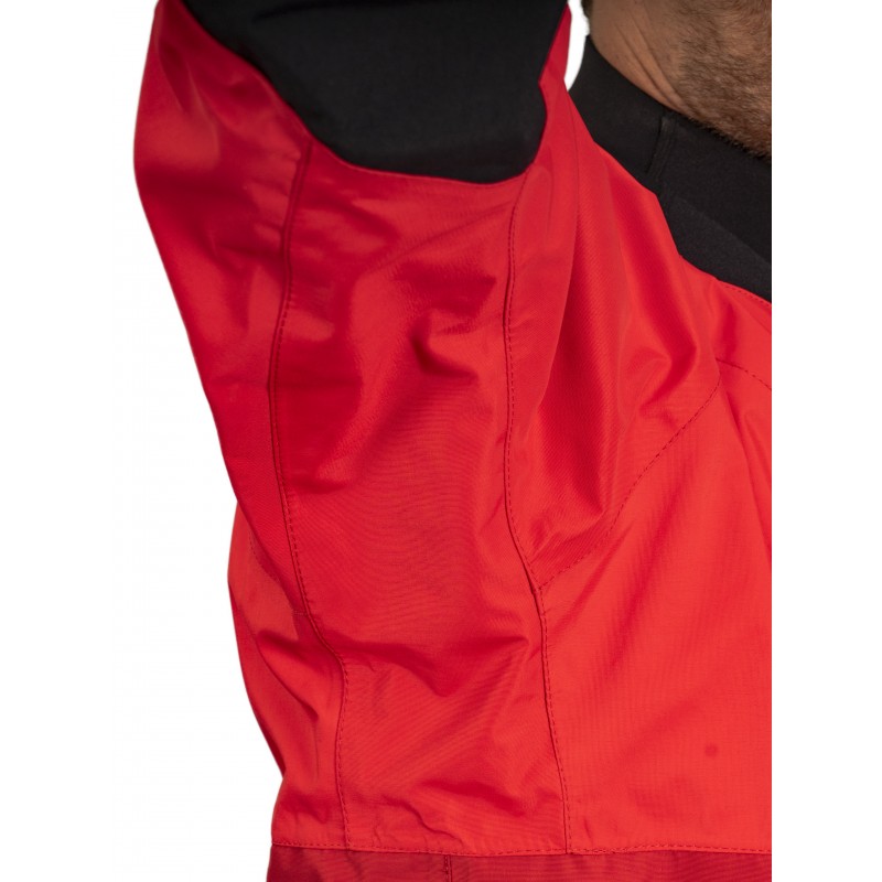 - Manžety bicepsů jsou z dvojitého, pružného neoprenu. Na vnitří straně mají silikonový zátěr a díky dostatečné délce perfektně přiléhají a těsní. Při svlékání bundy je zátěr na vnější straně manžety a bunda jde bez většího úsilí sundat. Při oblékání je možné manžetu ohrnout a bundu i manžetu tak pohodlně dostanete na místo určení.