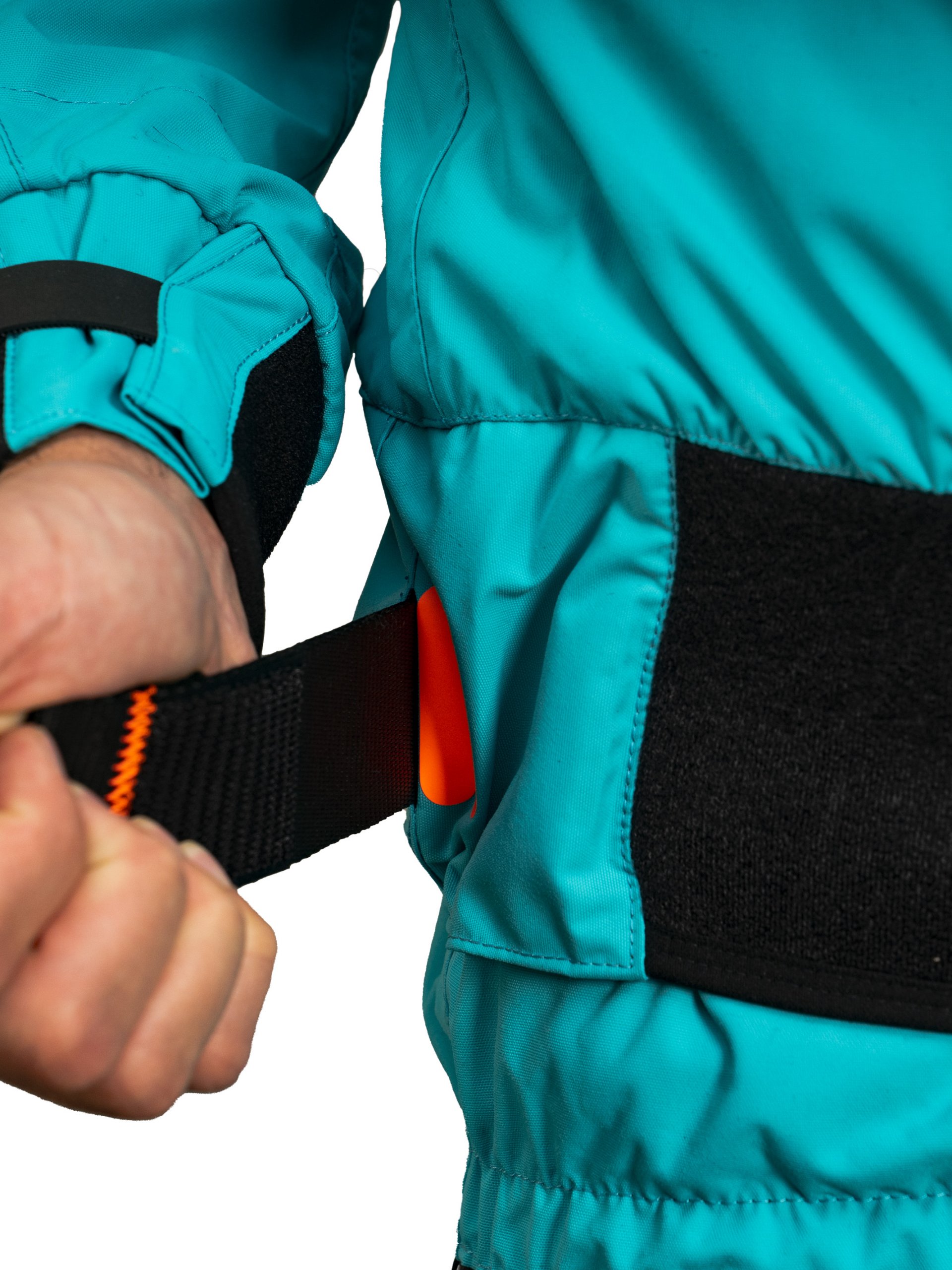- Díky Double Pull systému jde pas pohodlně dotáhnout. Zatažením popruhů v pase vpřed se dotahuje přední část i záda bundy.