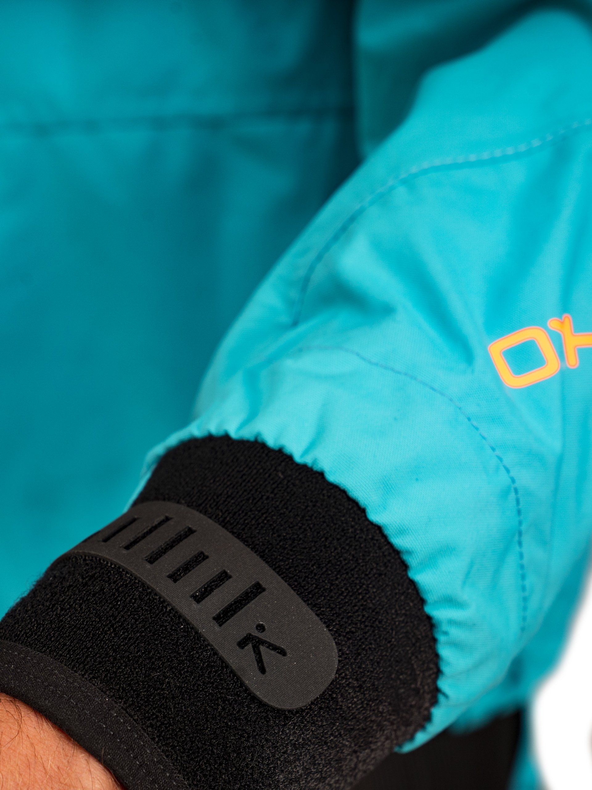 - Vysoký neoprenový krk je ukončen latexovým zátěrem, který zajišťuje lepší těsnění a jeho těsnost je dále nastavitelná pomocí stahovací gumové šňůrky v tunýlku a přizpůsobí se tak různým obvodům krku. Díky jedné vrstvě pružného neoprenu se velmi snadno přetahuje přes hlavu.