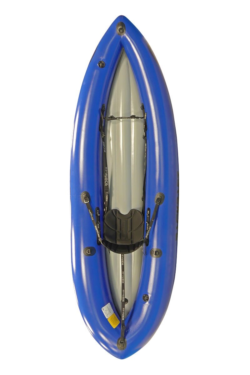 Stabilni a samovylévací packraft S Junior, nejmenší z dílny Robfin, s vlastnostmi pevné lodi. Rychlá a obratná loď, vhodná pro začátečníky i dobré kajakáře.