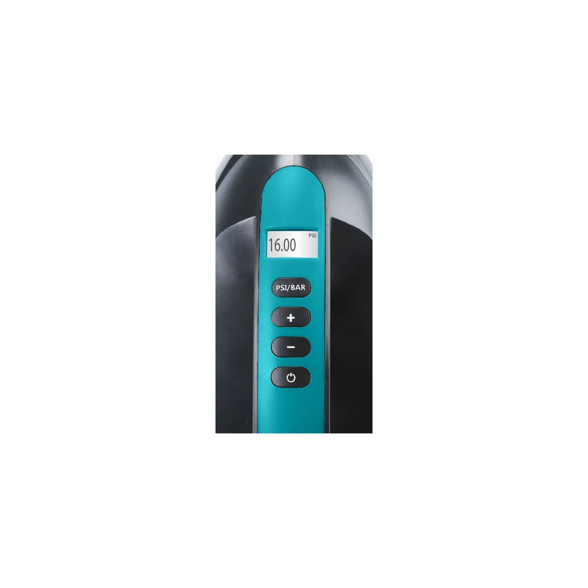 Pumpa Spinera SUP2 zaujme nejen kompaktním tělem z ABS + PA plastu v oranžovo-černém provedení, ale také moderním LCD displejem s dotykovým ovládáním. Díky němu lze jednoduše nastavit požadovaný tlak v PSI a sledovat průběh nafukování. Uživatelé tak mají vždy plnou kontrolu nad celým procesem.