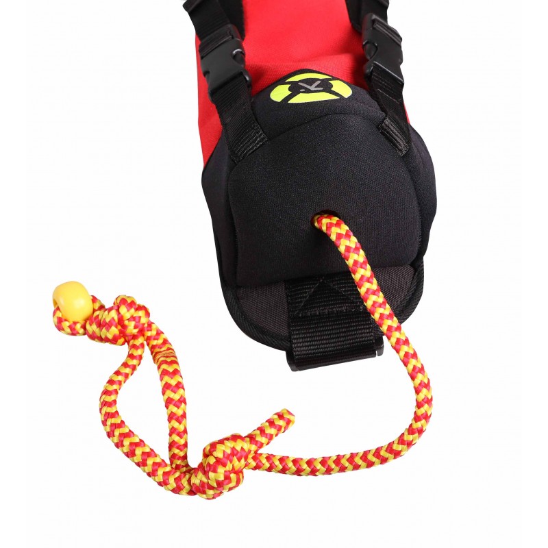 - Následným zatažením za kuličku v neoprenovém víku je házečka připravena pro záchranu.