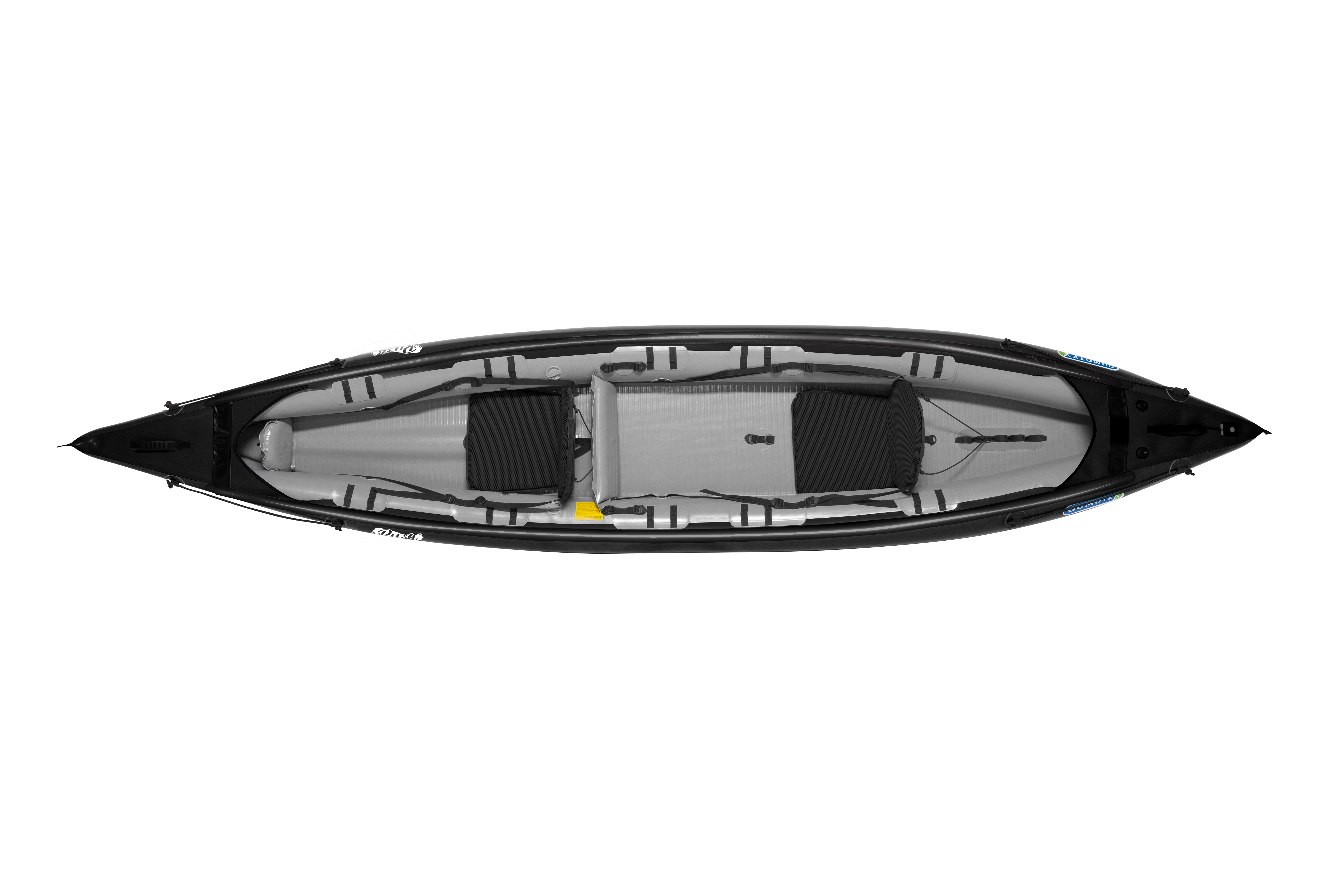 Dno kajaku tvoří zcela plochý profil s integrovaným předním kýlem, který zlepšuje hydrodynamiku a průraznost vlnami. Drop-stitch struktura v dnu i obou koncích lodi zajišťuje vysokou tuhost, a tím i lepší přímé vedení a špičkovou stabilitu. Plavidlo skvěle reaguje i v tekoucí vodě a zvládne řeky do WW2.
