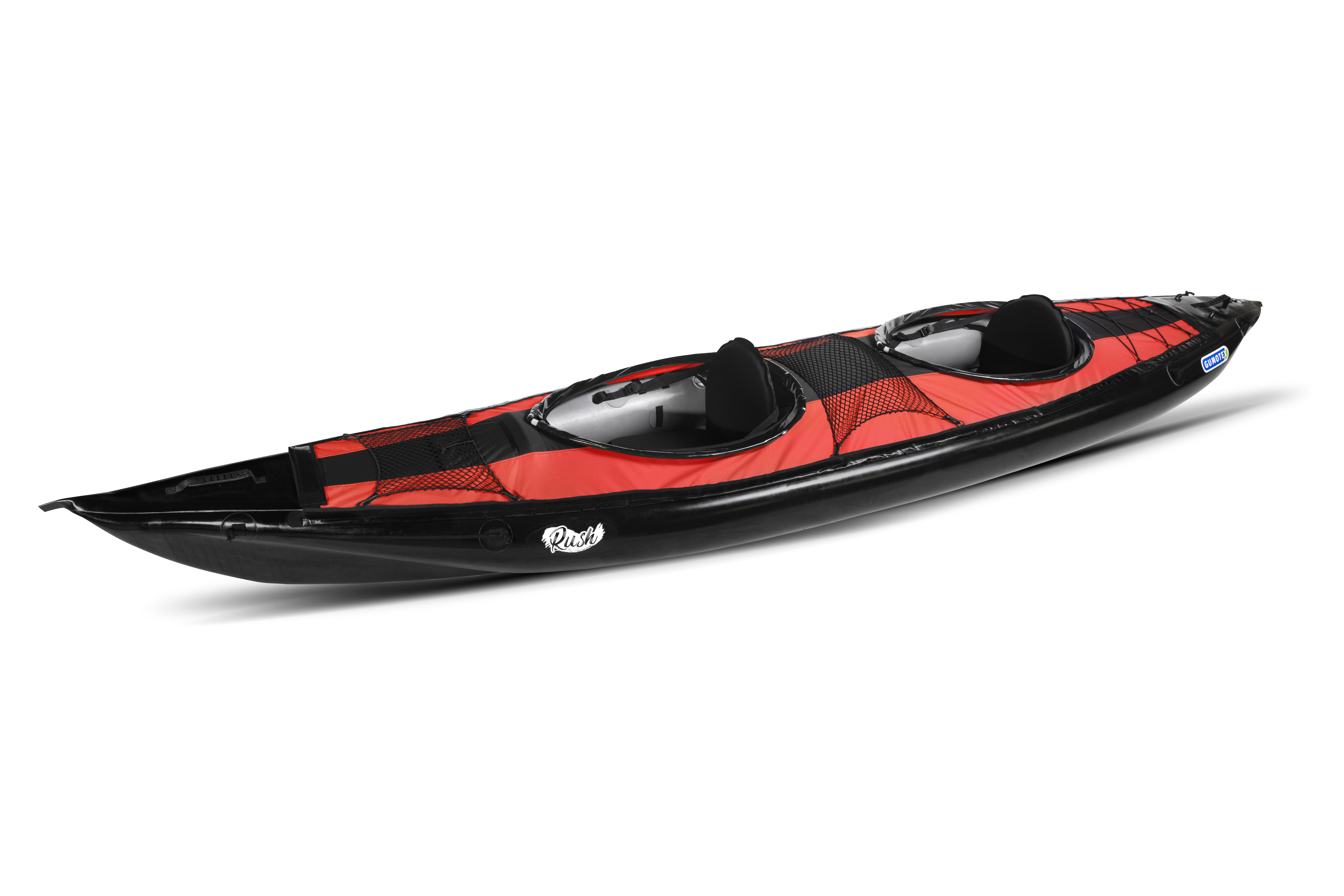 Rush 2 (420 × 82 cm, 15,5 kg, nosnost 195 kg) je hybridní dvoumístný nafukovací kajak, který spojuje vysokotlakou technologii drop-stitch s klasickými nafukovacími komorami. Tento koncept umožňuje maximální tuhost, skvělou stabilitu a vynikající skluz. Vhodný jak pro turistické plavby, tak i pro vícedenní vodácké expedice s vybavením.