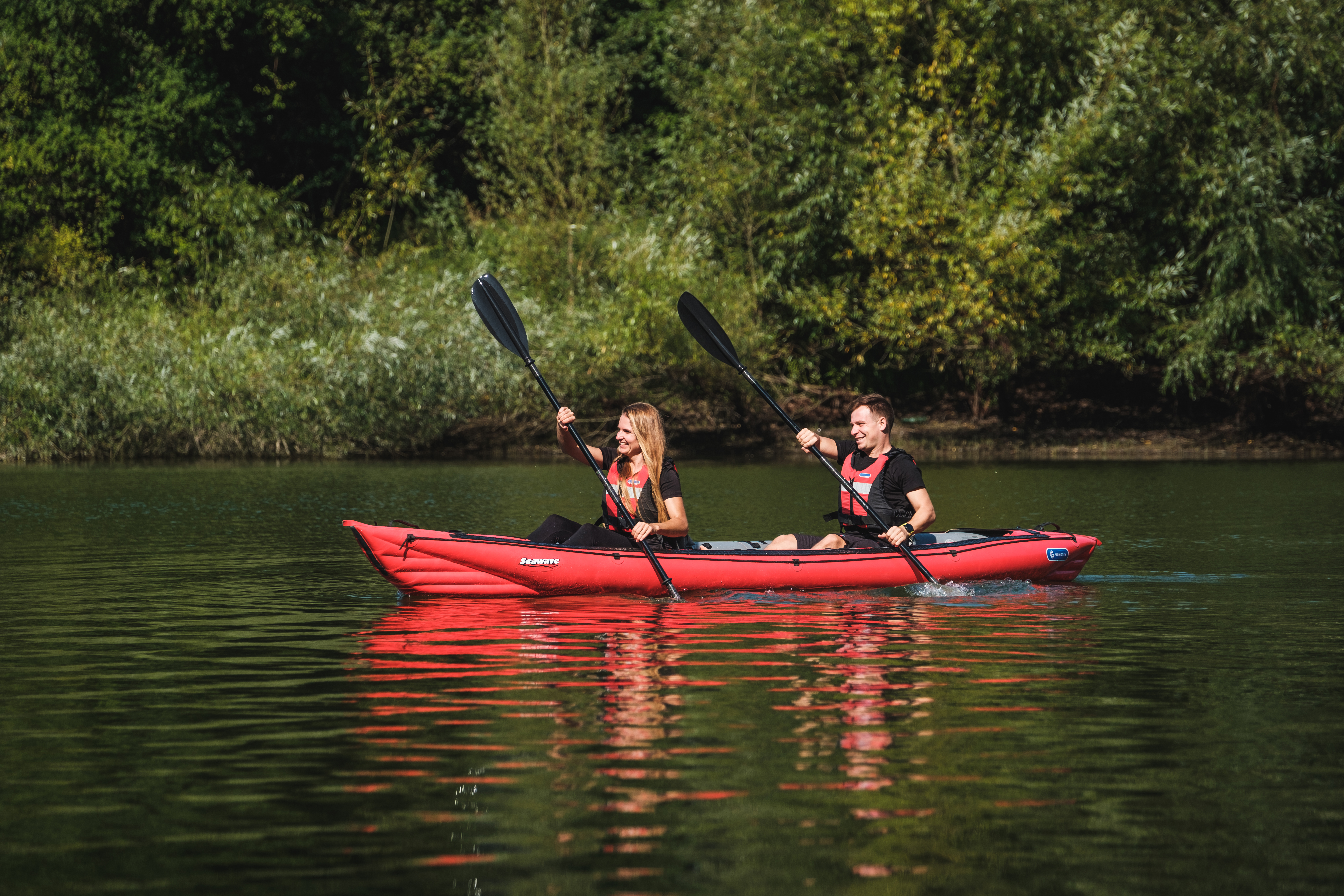 Gumotex Seawave je inovativní nafukovací kajak vhodný pro moře, přehrady, jezera i české řeky. Díky variabilní konstrukci jej lze přizpůsobit pro jednoho, dva nebo tři jezdce. Vyznačuje se výbornou směrovou stabilitou, vysokou rychlostí a jednoduchou ovladatelností. Díky odolnému materiálu Nitrilon® a výztuhám trupu je ideální pro vícedenní putování i rekreační výlety.