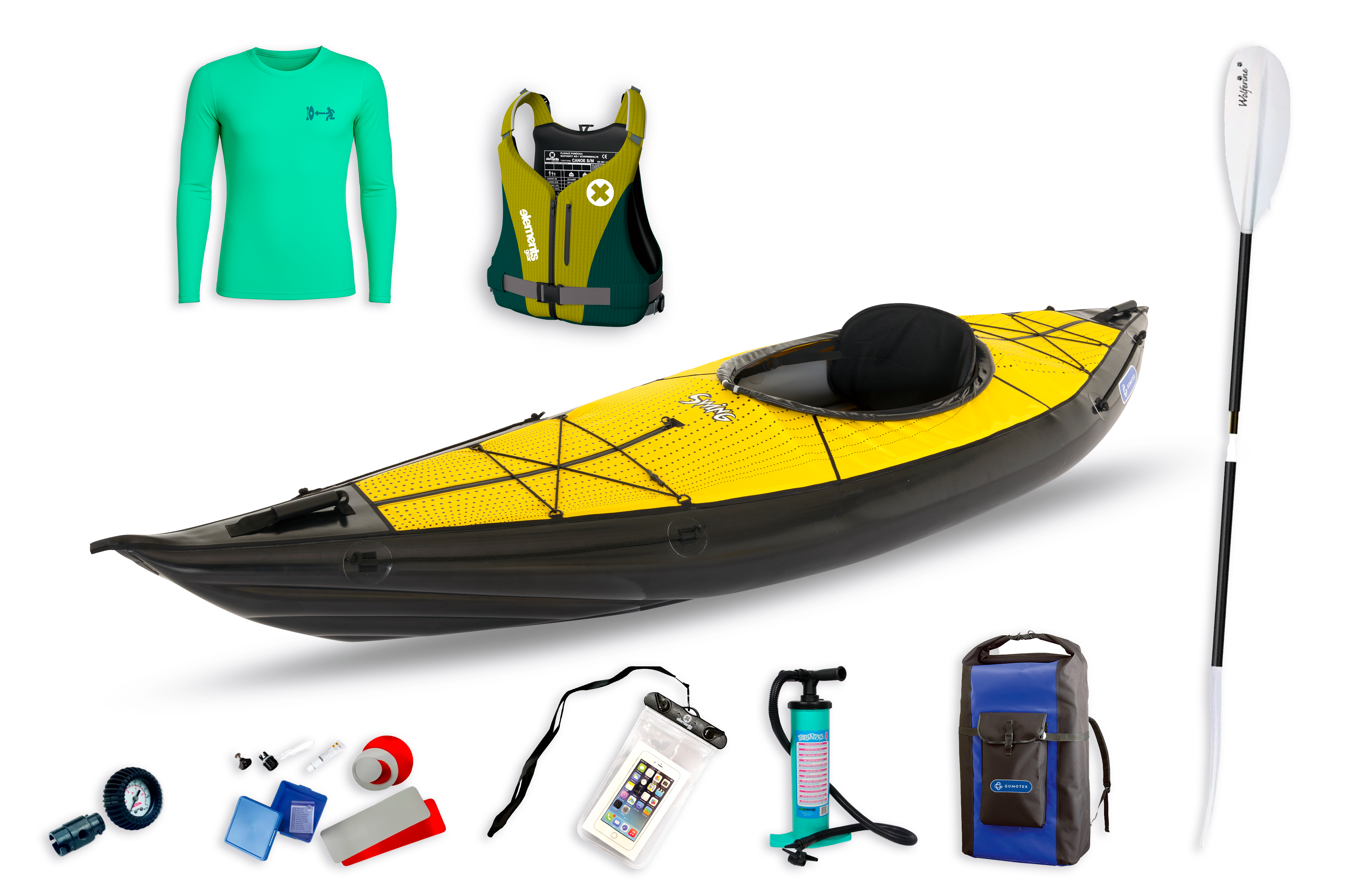 Nafukovací kajak Gumotex Swing 1 (model 2025) ve zvýhodněném setu pro všechny vodáky. V ceně setu získáte: