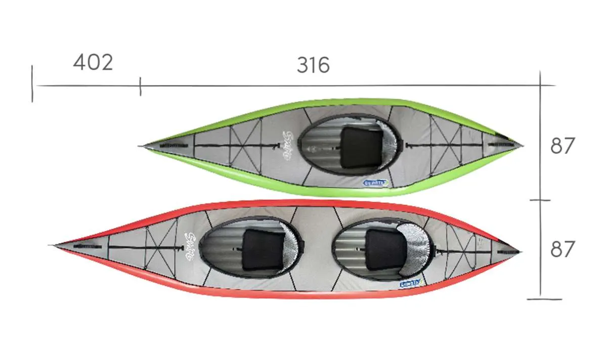 Gumotex Swing 1 (316 × 87 cm, 11,3 kg, nosnost 120 kg) je kompaktní nafukovací kajak se zipovým uzavřeným kokpitem, určený pro jednoho jezdce. Vhodný pro klidné vody i mírné peřeje do obtížnosti WW2, nabízí ideální kombinaci nízké hmotnosti, jednoduché manipulace a vysokého komfortu. Díky konstrukci z odolného materiálu NITRILON® je kajak lehký, ale zároveň odolný vůči oděru, UV záření a dlouhodobému používání.