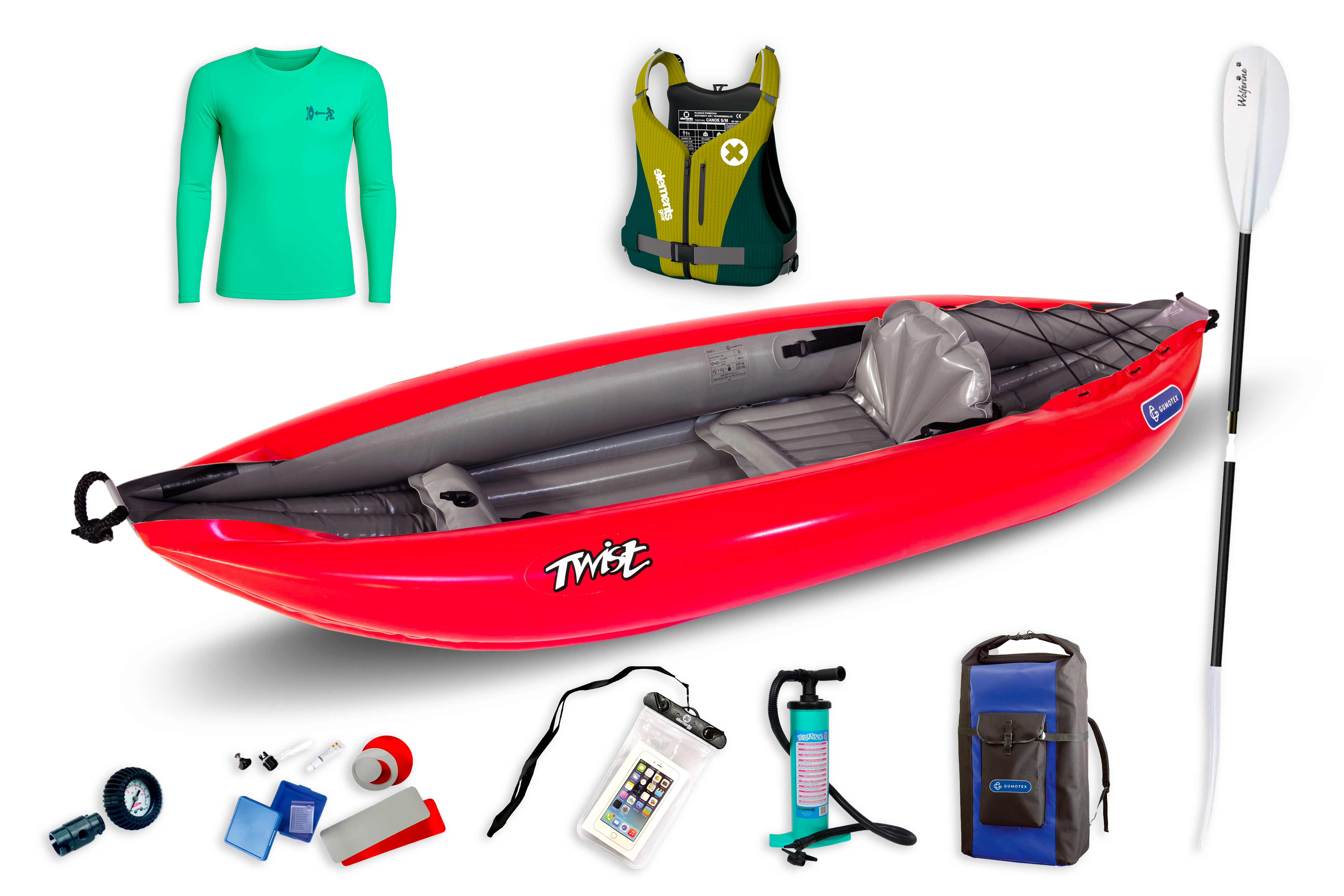 Nafukovací kajak Gumotex Twist 1 ve zvýhodněném setu pro všechny vodáky. V ceně setu získáte: