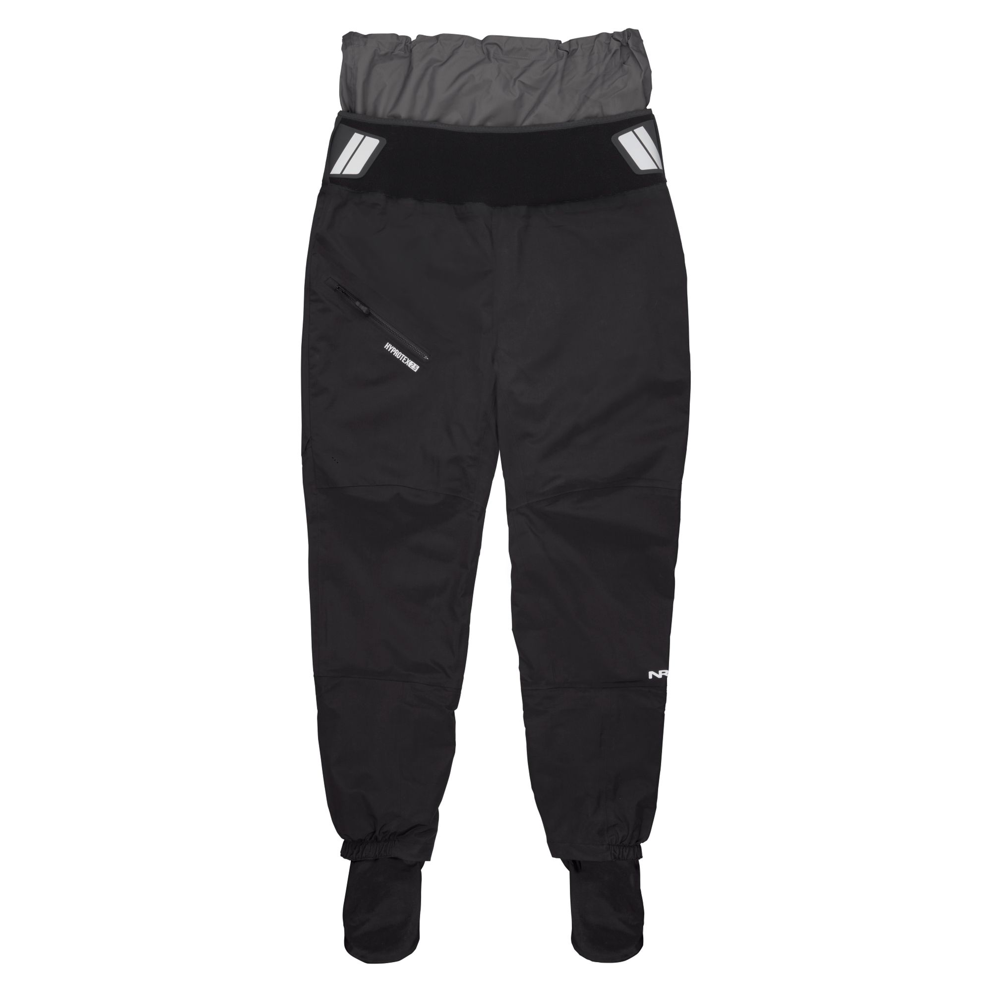 Kalhoty mají relaxovaný střih, který umožňuje snadné vrstvení oblečení bez omezení pohybu. Dvojitý pasový tunel s 20 cm nylonovým překrytím a 10 cm širokým neoprenovým pasem s háčkovým a smyčkovým zapínáním zajišťuje bezpečné a přizpůsobitelné utěsnění. Zesílené oblasti sedu a dolních končetin poskytují zvýšenou odolnost proti oděru, což je ideální pro náročné podmínky na vodě.