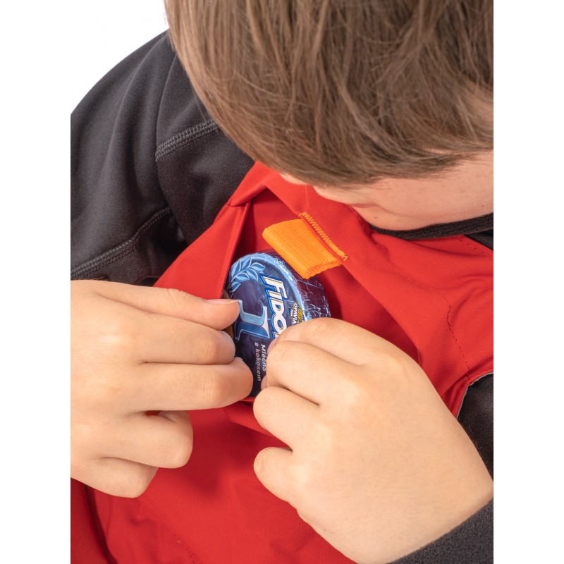 - Přední kapsa na suchý zip na svačinu a poklady nalezené během průzkumu.