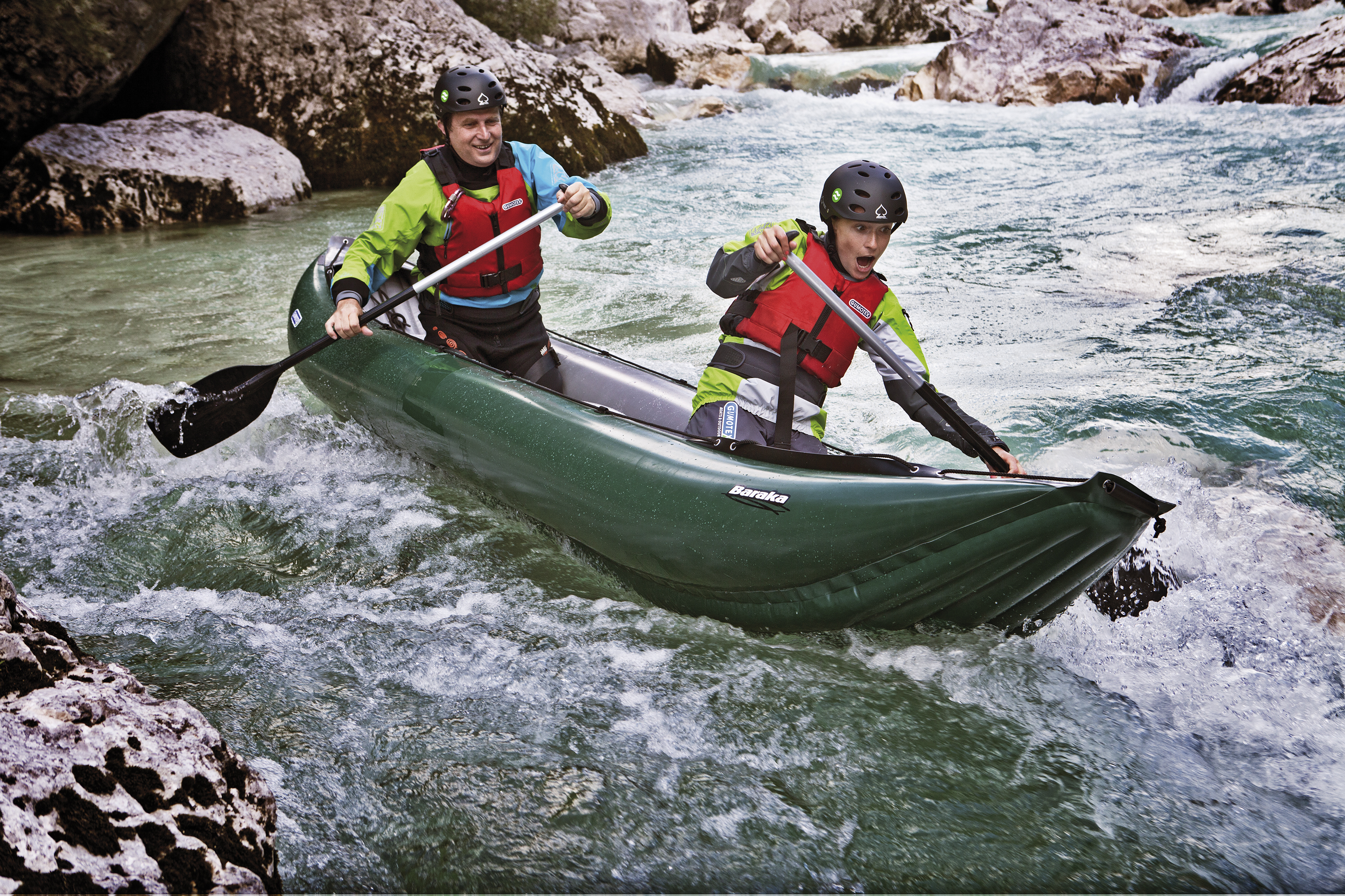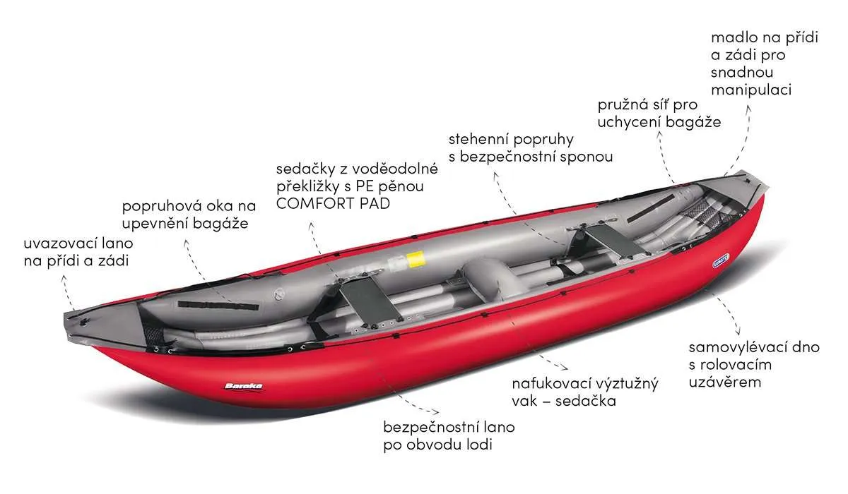 - Kánoe: Nafukovací kánoe Baraka – červená nebo zelená