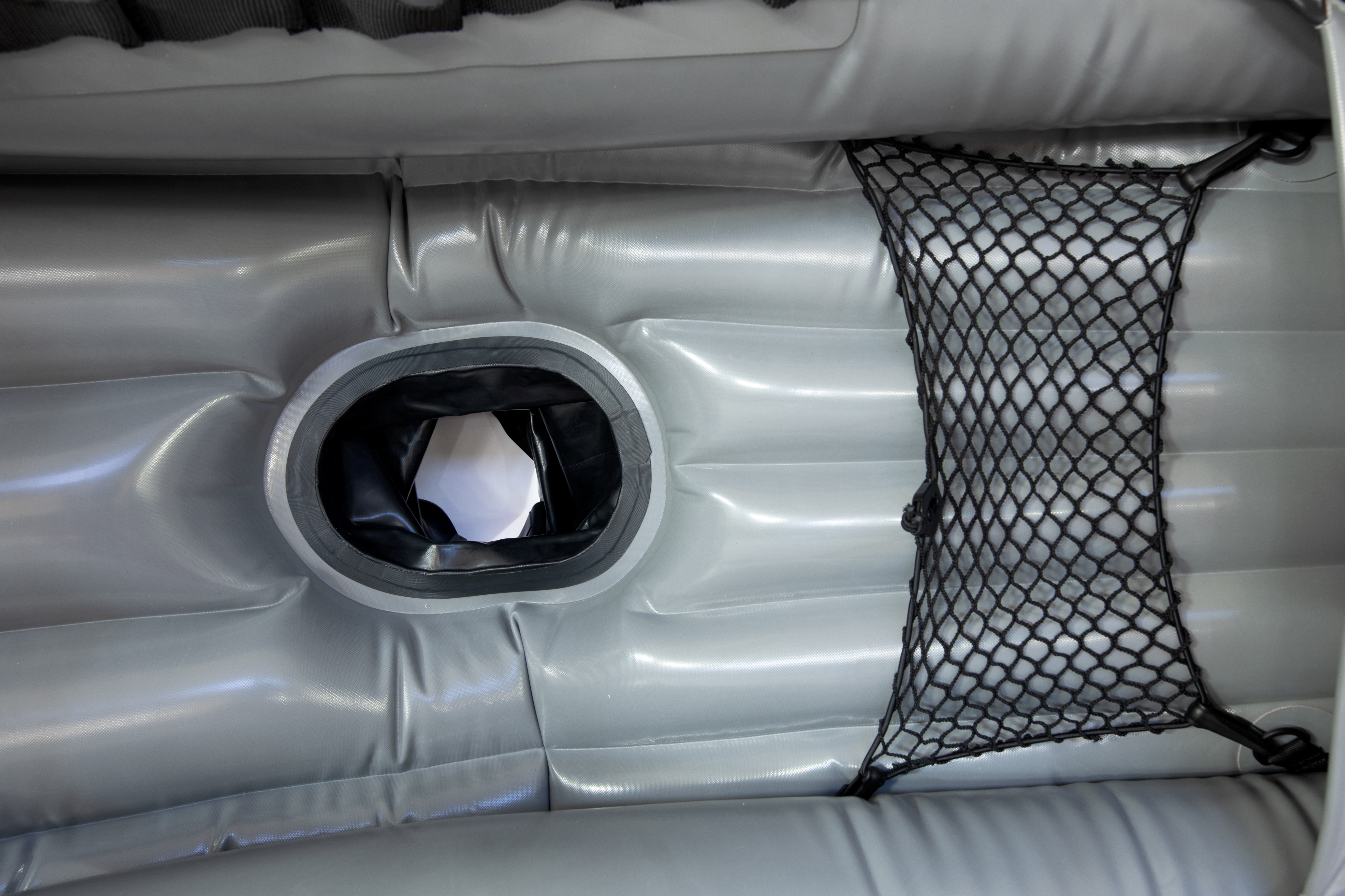 - Samovylévací dno – s rolovacím uzávěrem pro rychlé vypuštění vody z lodi