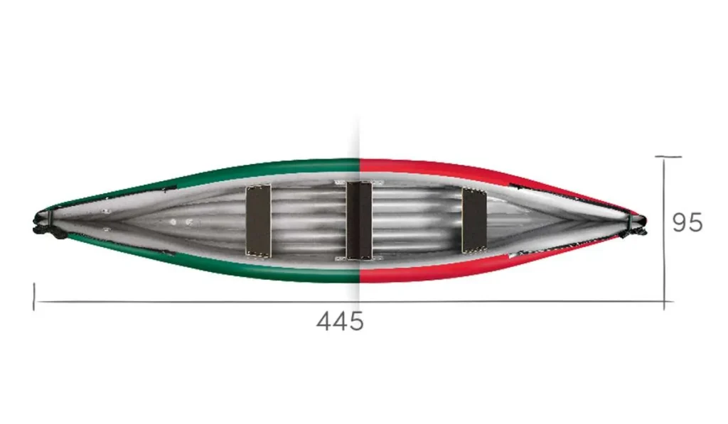 Tvar trupu modelu Scout Standard připomíná klasickou otevřenou kánoi s ostrou přídí, která snadno rozráží vodu a snižuje odpor. Široké a ploché dno dodává lodi vysokou stabilitu, což ocení zejména začátečníci nebo posádky s dětmi. Díky délce 445 cm a systému výztuh je loď nejen rychlá, ale i výborně ovladatelná při jízdě po jezerech, řekách i v peřejích do WW3.
