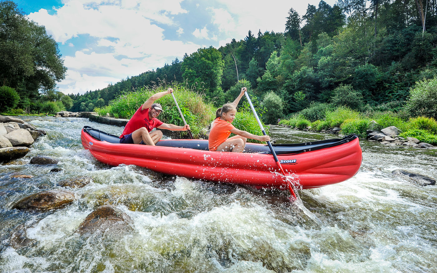 Kánoe: Nafukovací kánoe Scout – červená nebo zelená