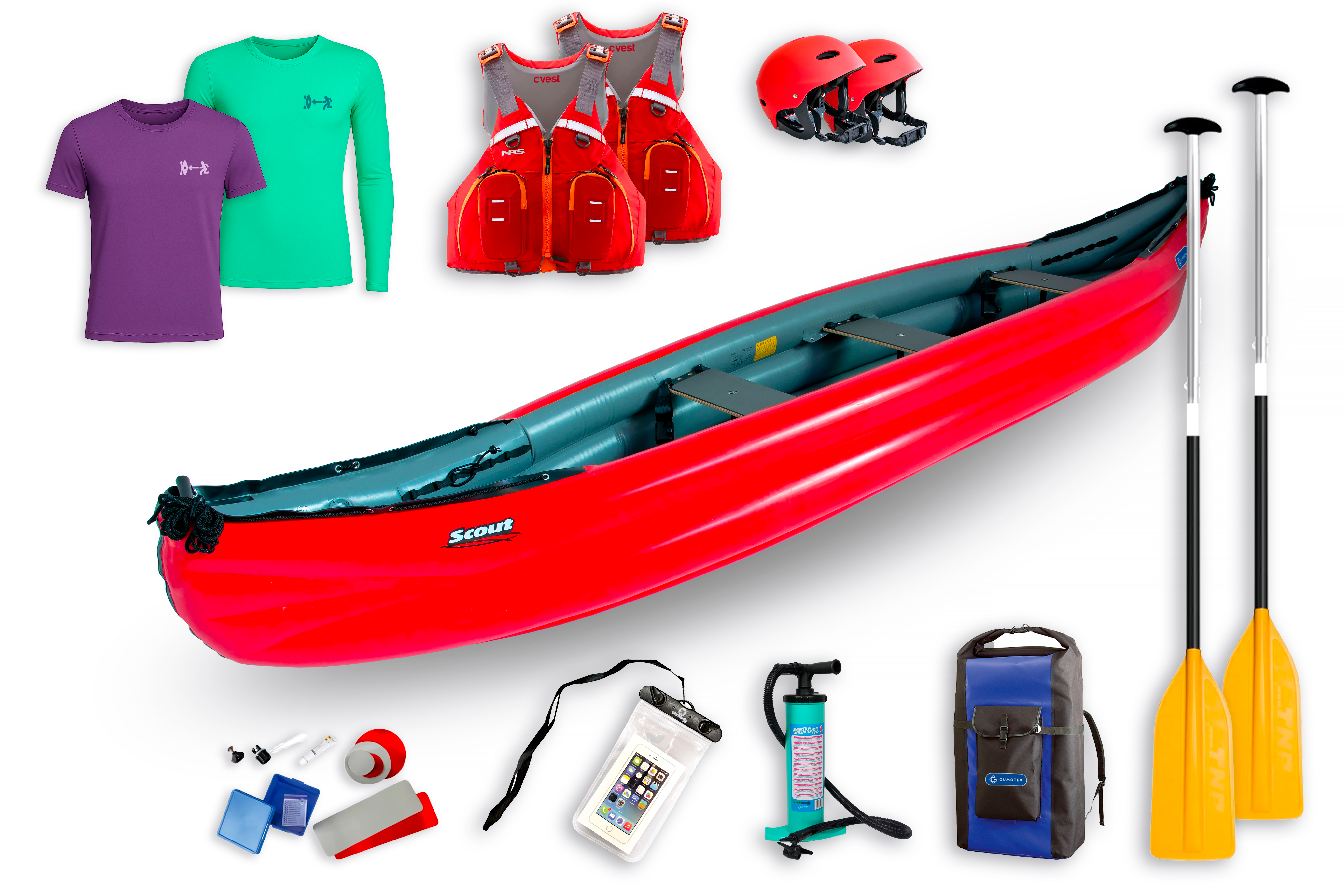 - Kánoe: Nafukovací kánoe Scout – červená nebo zelená