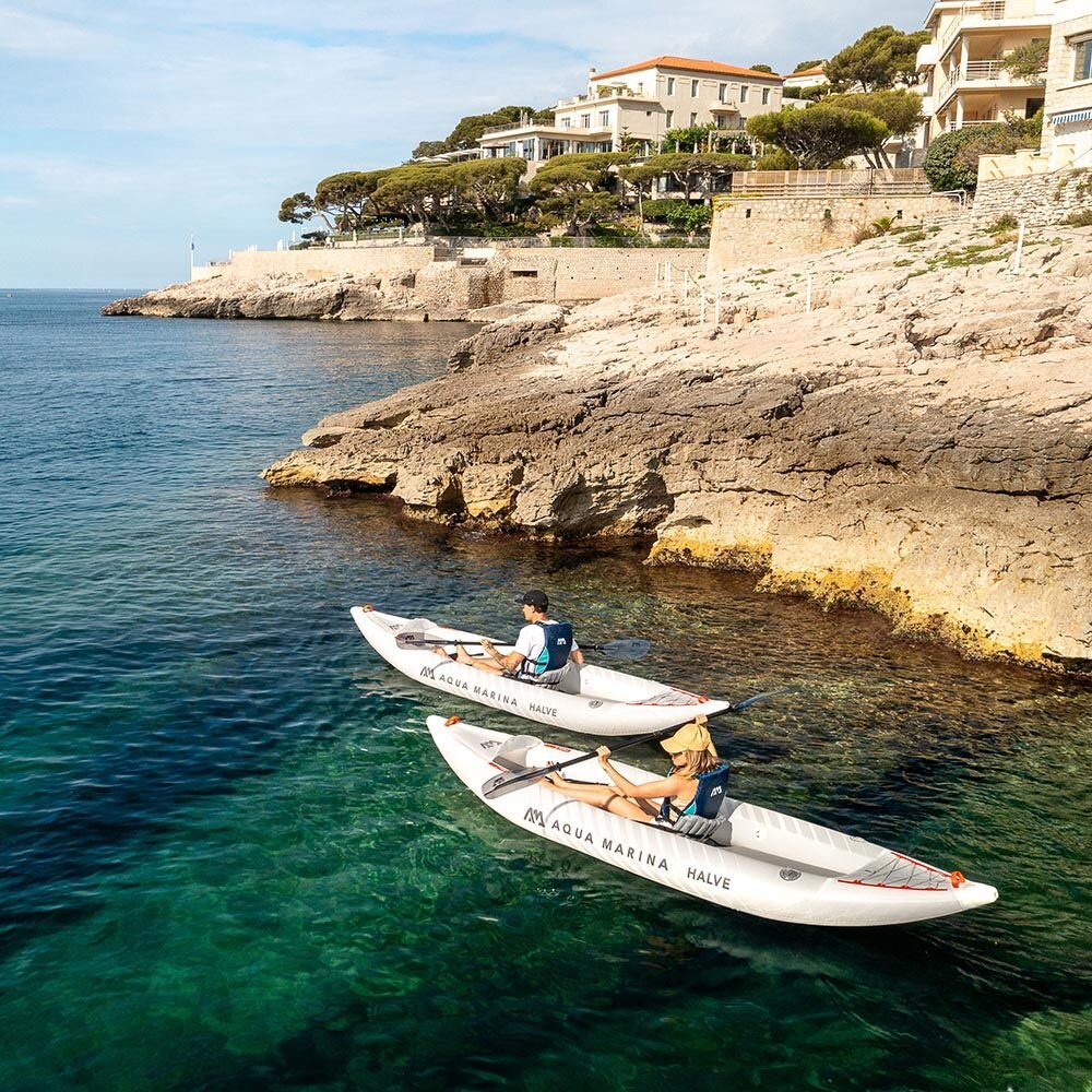 AQUA MARINA Halve je ideální volbou pro ty, kteří hledají lehký, snadno skladovatelný a zároveň odolný kajak pro různá vodní dobrodružství. S jeho inovativními funkcemi a stylovým designem vám umožní zažít vodní sporty v nové dimenzi.