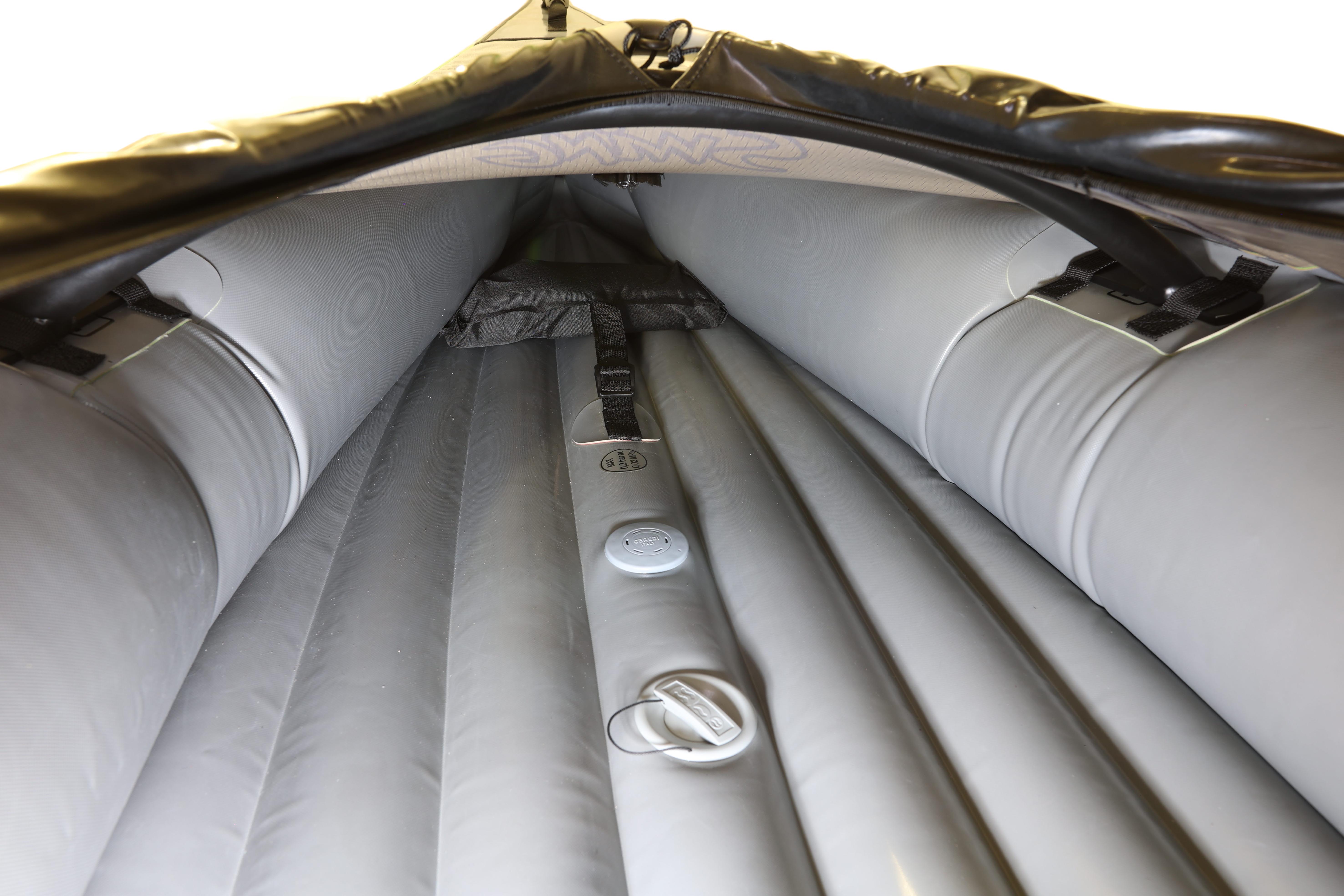Kajak je vybaven výztuhami pro vyšší tuhost, což výrazně zlepšuje jeho stabilitu a jízdní vlastnosti. Díky uzavřenému kokpitu se zipy vpředu i vzadu poskytuje vyšší ochranu před stříkající vodou a snadný přístup k vybavení. Sedadlo z PE pěny a nastavitelná opěrka nohou poskytují pohodlnou pozici i při delších plavbách.