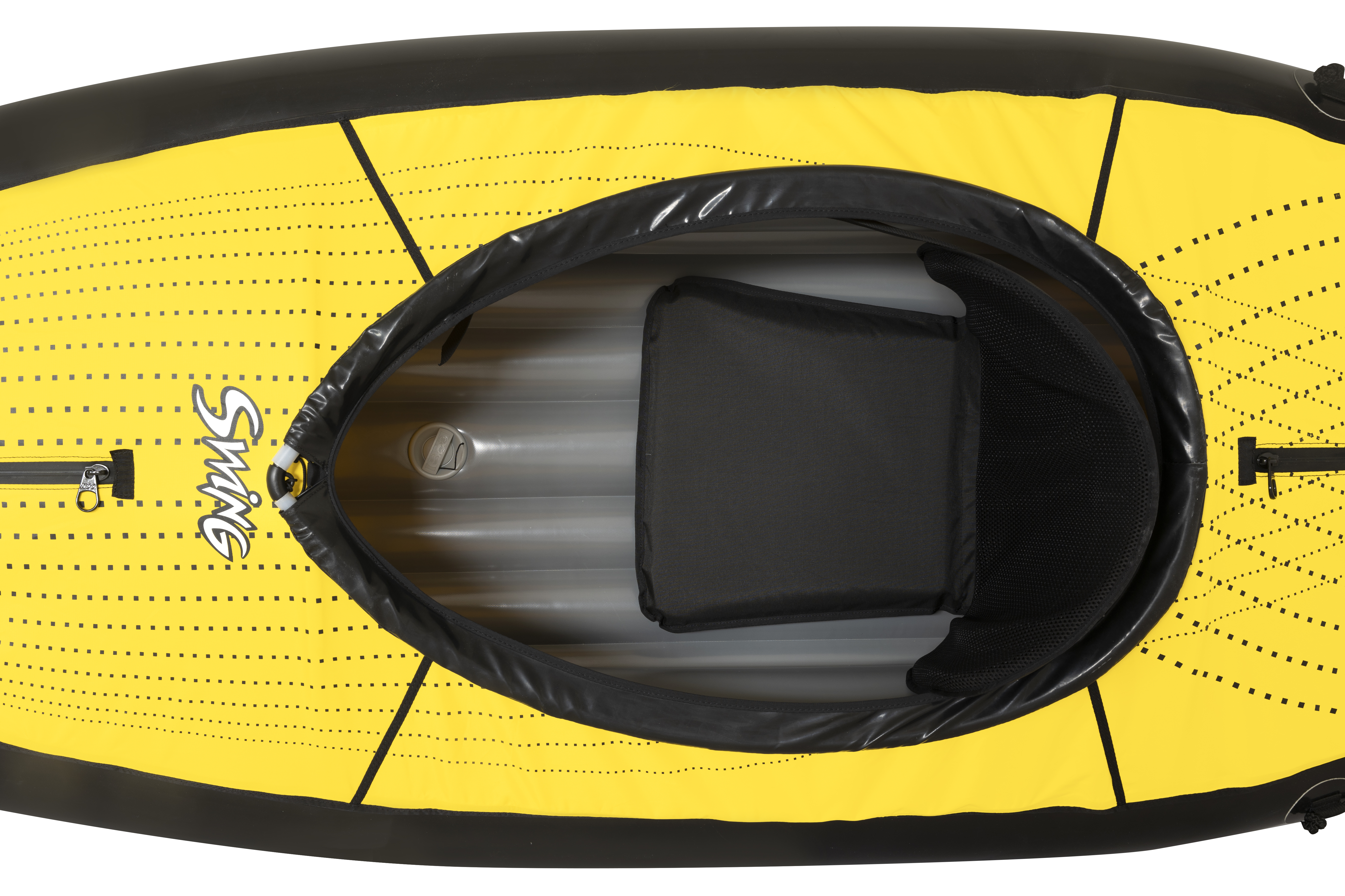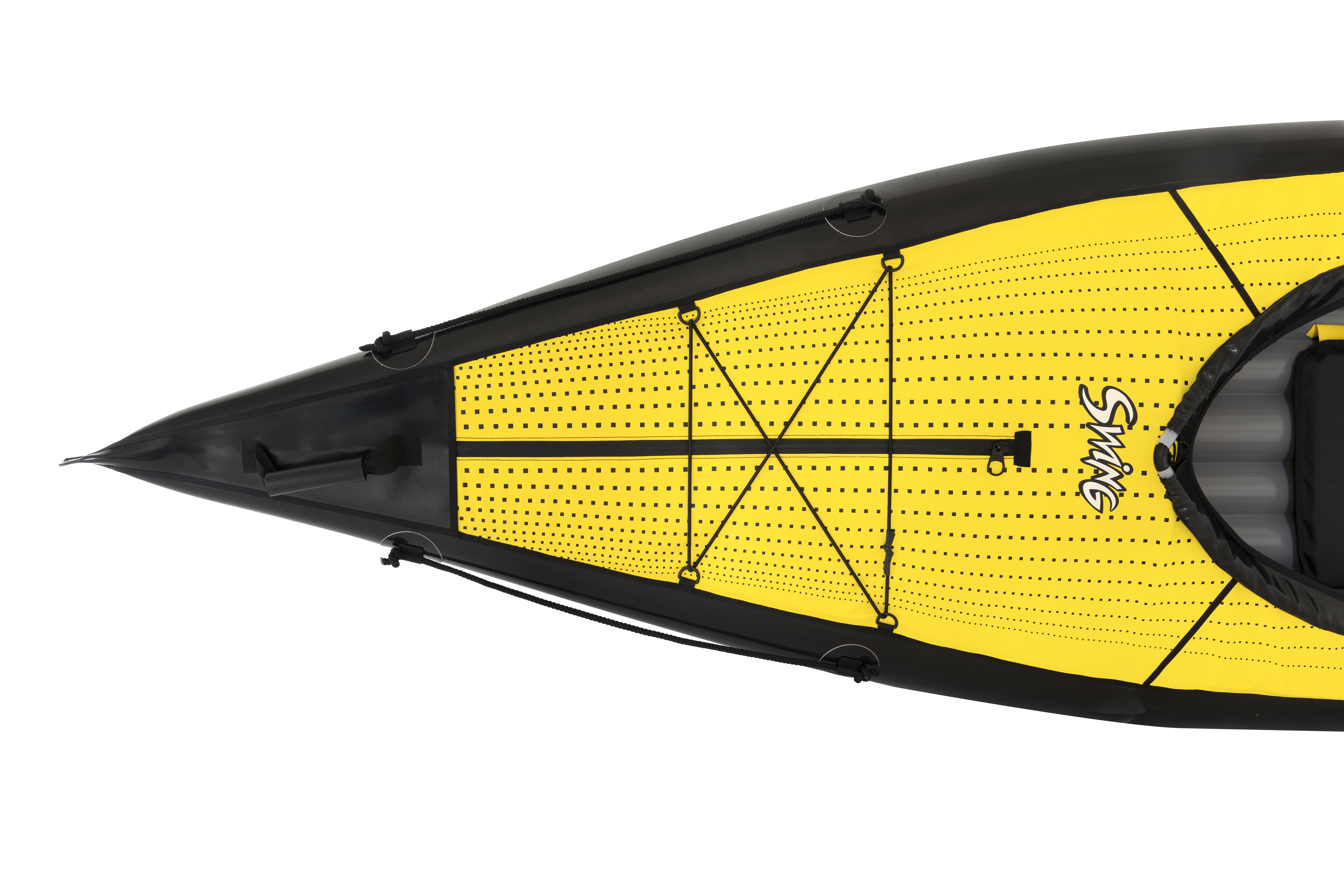 Swing 1 je jednosedadlový nafukovací kajak, který se stal oblíbenou volbou pro rekreační jezdce na menších řekách. Nová generace z roku 2025 posouvá model ještě dál: zipy na palubě jsou nyní vodotěsné, úchyty z tvrdého plastu výrazně zvyšují odolnost při manipulaci a nový, silnější kýlový korálek zlepšuje vedení stopy. Díky své šířce 87 cm si Swing 1 zachovává vysokou stabilitu, což ocení zejména začátečníci, ale i zkušení jezdci při technických manévrech na vodě.