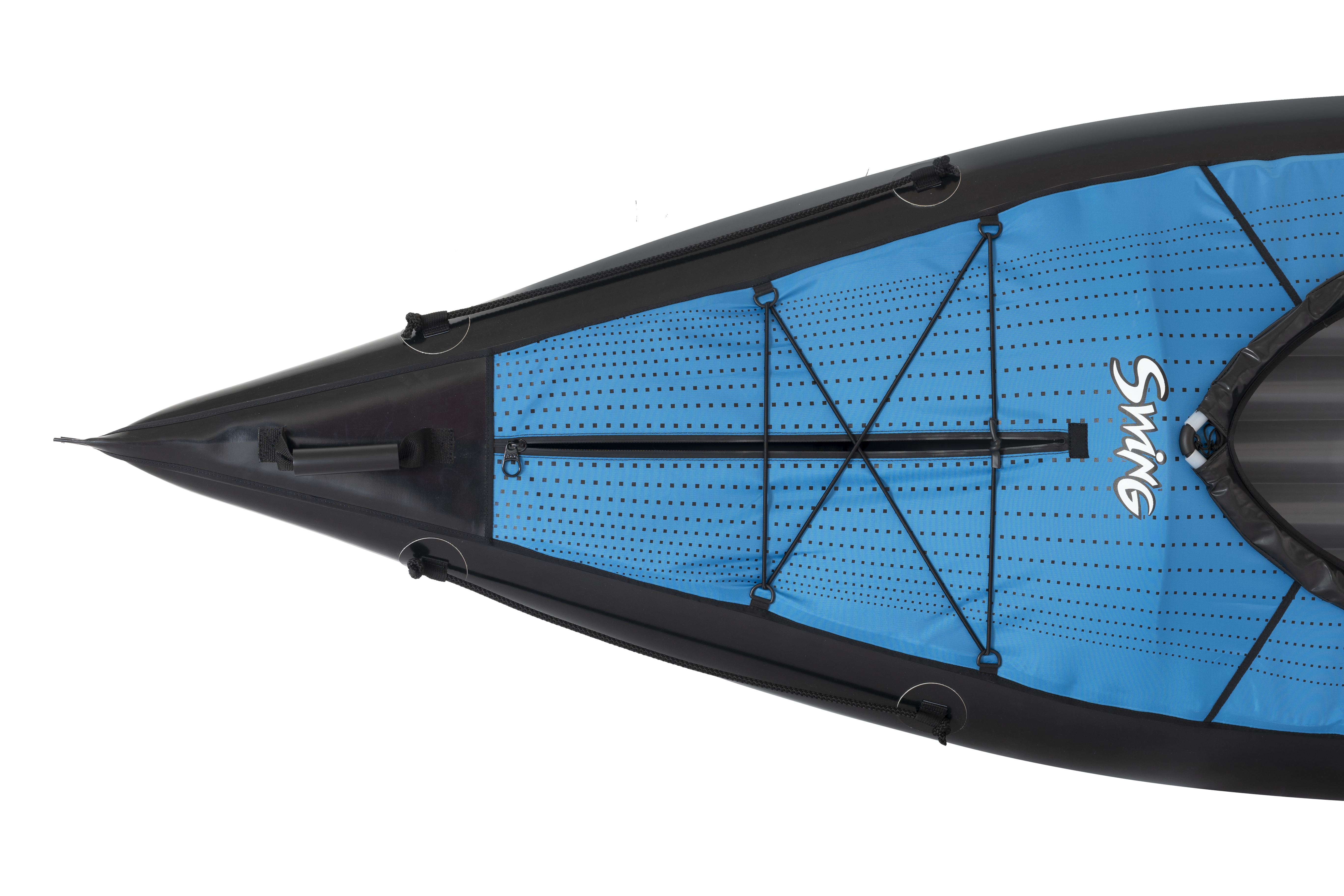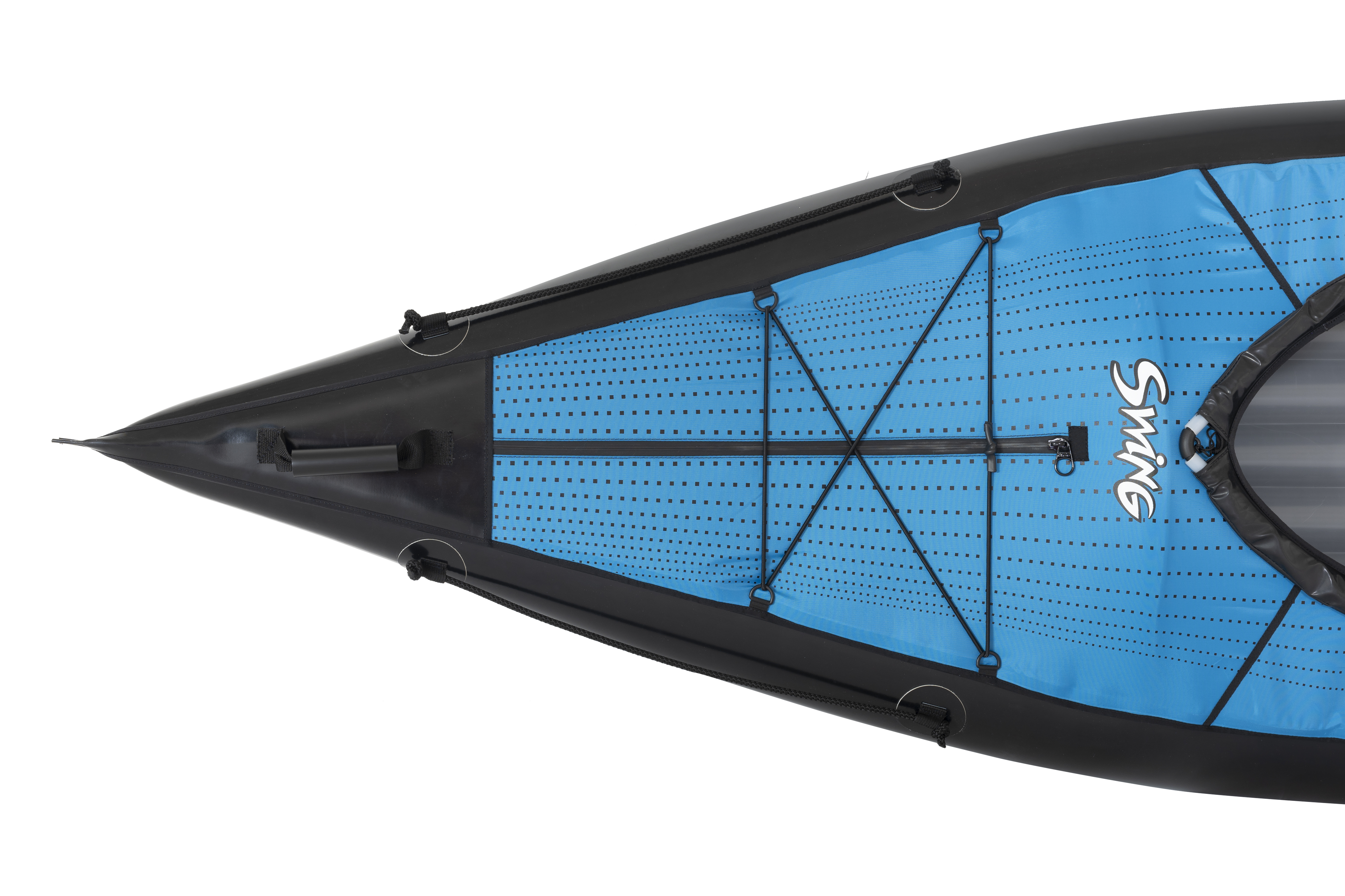 Swing 2 patří mezi nejoblíbenější nafukovací kajaky Gumotexu. Nová verze 2025 přináší řadu praktických vylepšení: vodotěsné zipy na palubě, pevnější úchyty z tvrdého plastu, nové řešení opěrky nohou pomocí bočních popruhů a dvě centrální linky pro snadnější manipulaci. Uzavřená paluba chrání jezdce i vybavení, zatímco kompaktní rozměry a nízká hmotnost usnadňují přepravu. Swing 2 je vhodný jak pro rekreační začátečníky, tak pro zkušenější jezdce, kteří ocení jeho dobrou stabilitu a spolehlivé jízdní vlastnosti.