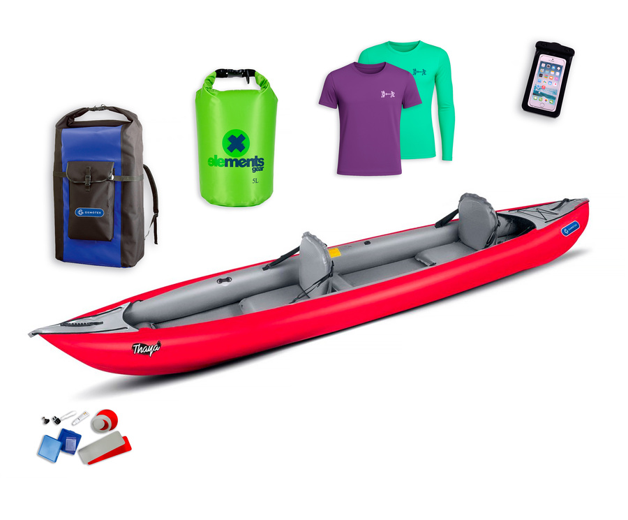 Hledáte nafukovací kajak s tuhostí pevné lodi? Nafukovací kajak GUMOTEX THAYA využívá revoluční technologii Drop-stitch, která zajišťuje neuvěřitelnou stabilitu a nosnost. S kapacitou 1 až 3 osoby a materiálem Nitrilon® je ideální pro rodinné výlety i dlouhé plavby. Nyní od nás k lodi získáte bohatý dárkový set: 2x funkční triko, drybag EG Light 5L, vodotěsný obal na mobil EG Flow, přívěsek a poukaz na 500 Kč / 20 EUR. Samozřejmostí je prodloužená 5letá záruka!