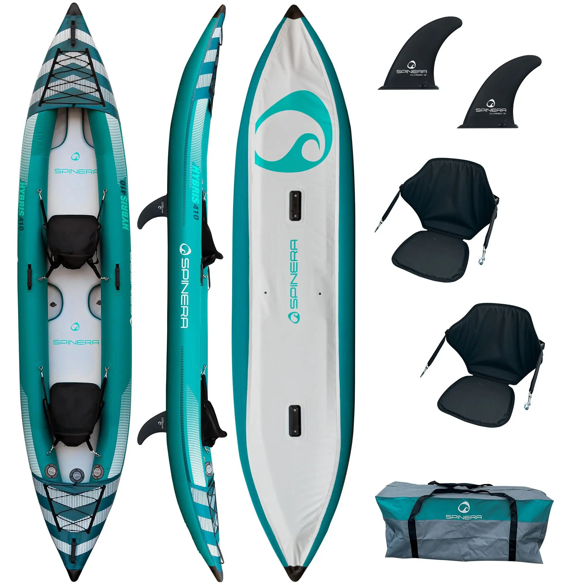 Spinera Hybris 410 je vysoce stabilní a snadno ovladatelný nafukovací kajak, který je ideální pro rekreační výlety na moři i tekoucích řekách do obtížnosti WW II. Díky kombinované konstrukci s pevnou drop-stitch podlážkou a odolnými PVC bočnicemi nabízí vynikající výkon a pohodlí pro dva pasažéry. Nízká hmotnost a praktická výbava zajišťují všestranné použití tohoto kajaku.
