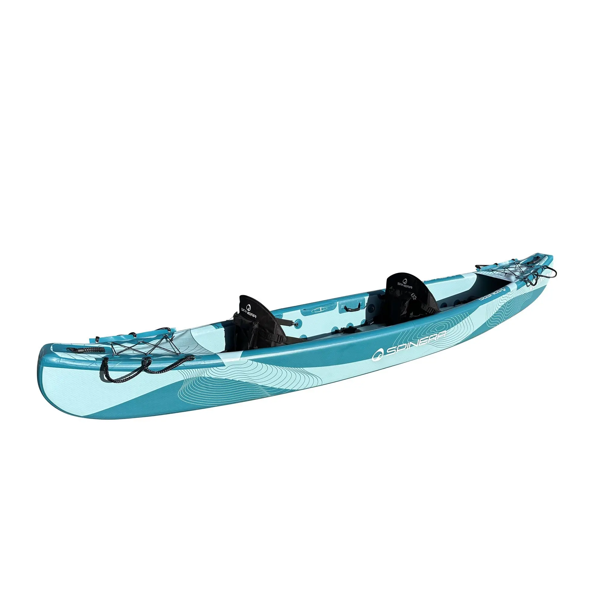 Nafukovací kajak Spinera Molveno 430 je univerzální model, který kombinuje odolnost, snadnou ovladatelnost a dostatek místa až pro dvě osoby. Díky pevné 1000D výztuži nabízí vysokou stabilitu a dlouhou životnost, a je ideální pro rekreační jezdce hledající pohodlí na klidných vodách, ale zvládne i lehčí peřeje.