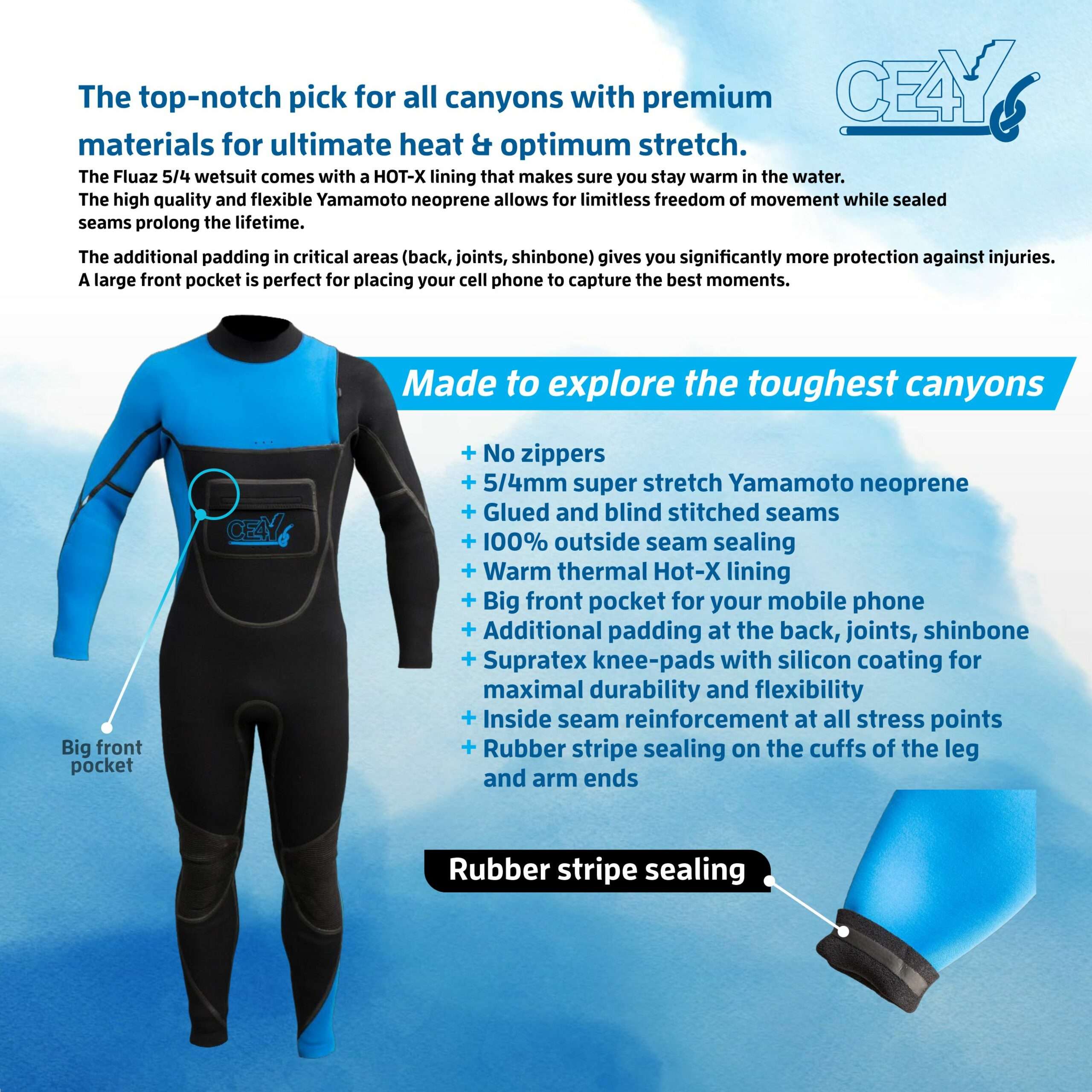 - Neopren Fluaz 5/4 canyoning je dodáván s podšívkou HOT-X, která zajišťuje, že zůstanete ve vodě v teple.