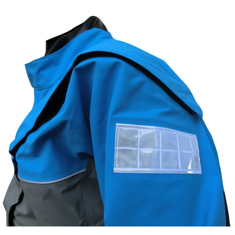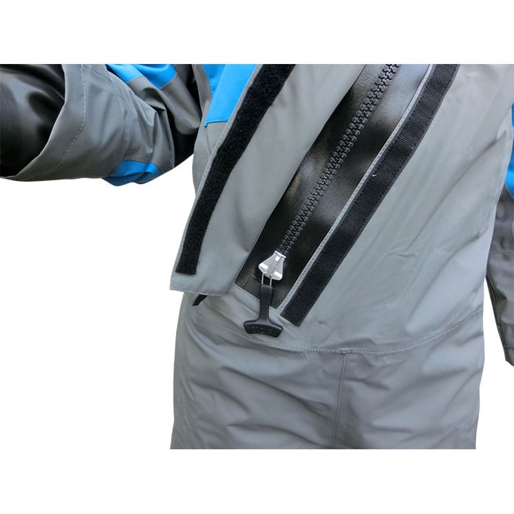 - Vodotěsný boční zip TI-ZIP od zadní části k přednímu pasu. Potažený klopou a suchým zipem.