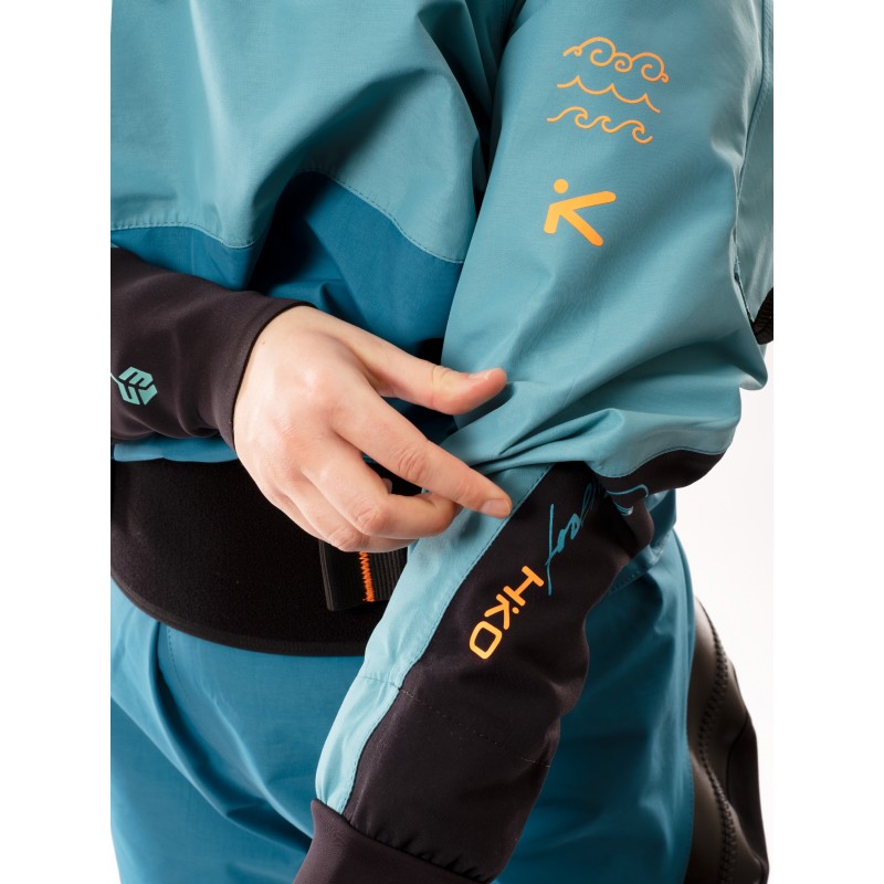 Na krku a zápěstích jsou vodotěsné latexové manžety chráněné neoprenem.