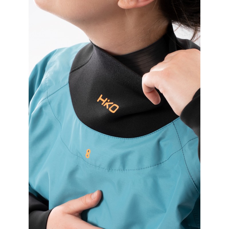 Oblek tak zajišťuje lepší pohyblivost a pocit pohodlí v horní polovině těla, kde kajakář potřebuje pocit volnosti.