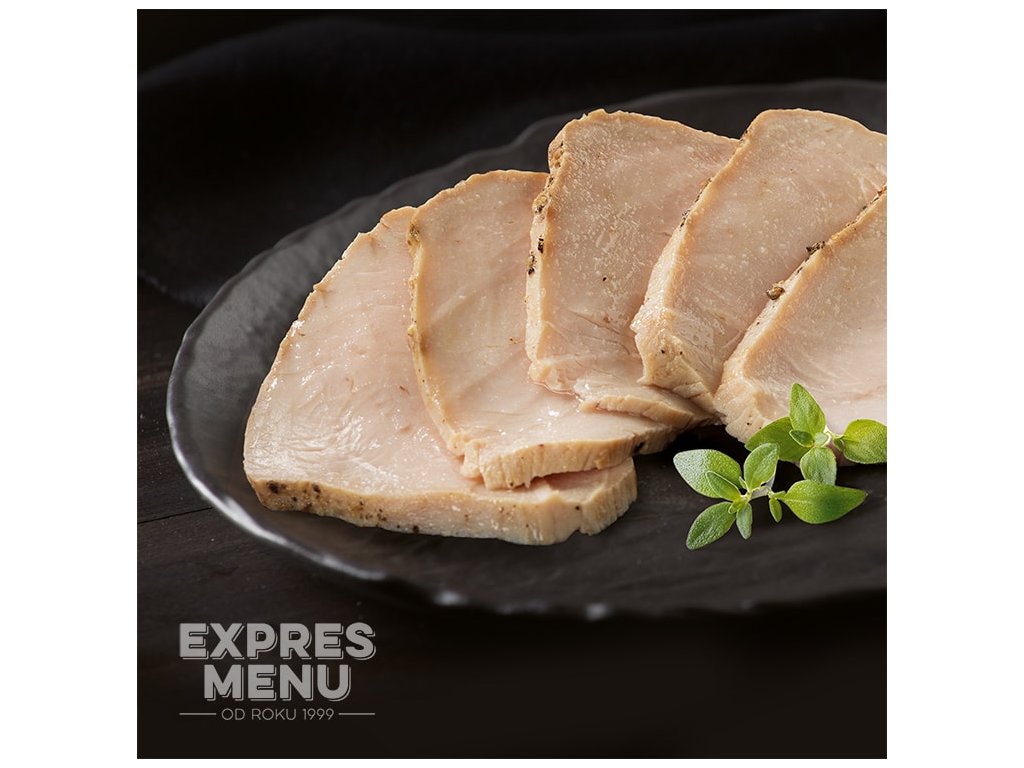 Marinované krůtí prso, pomalu pečené, krájené na tenké plátky. Vhodné pro přidání do salátů nebo do sendviče (bagety).