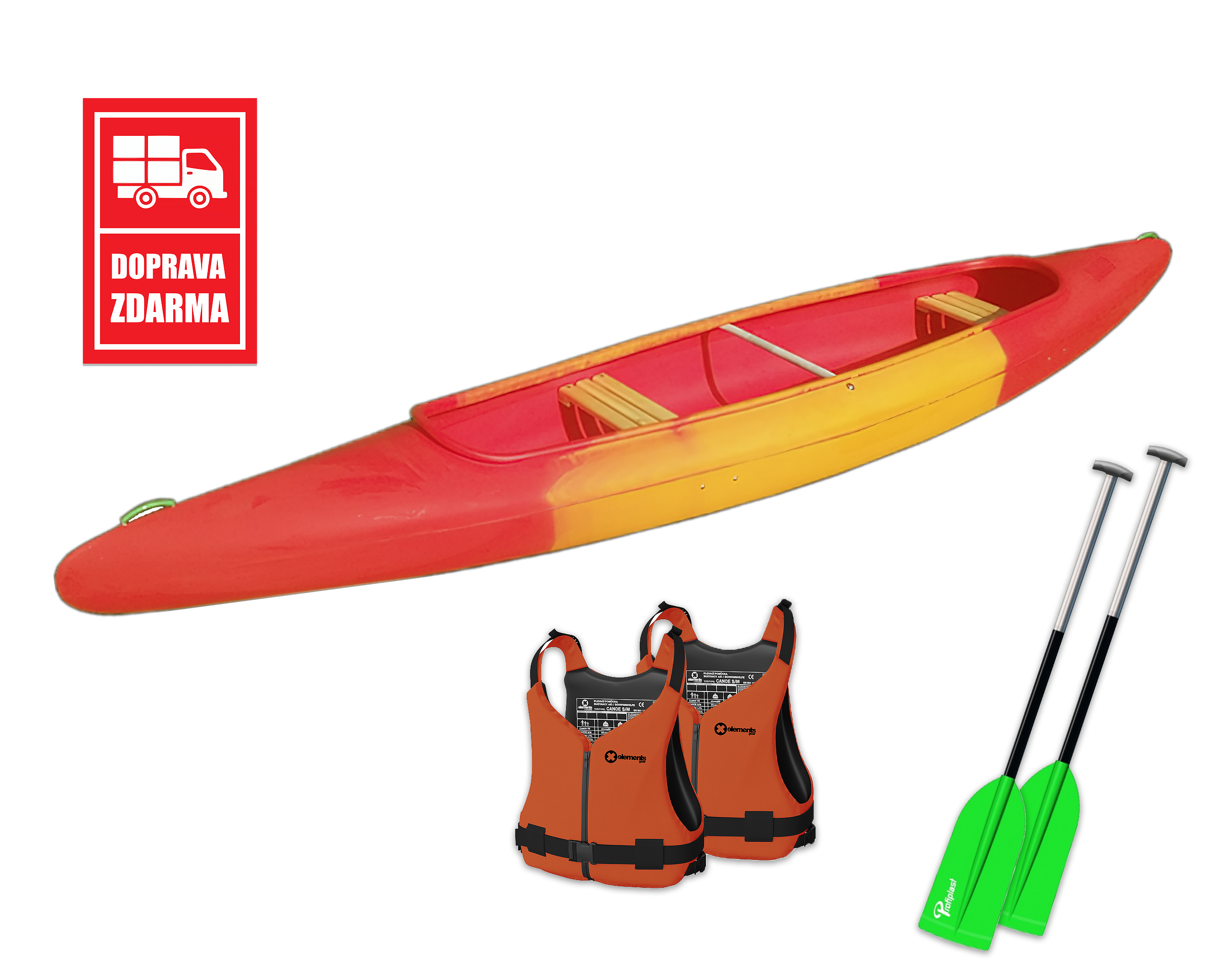 Speciální set kánoe Maku Vydra. V ceně: kánoe MAKU Vydra + 2x pádlo Profiplast Kano + 2x vesta EG Canoe