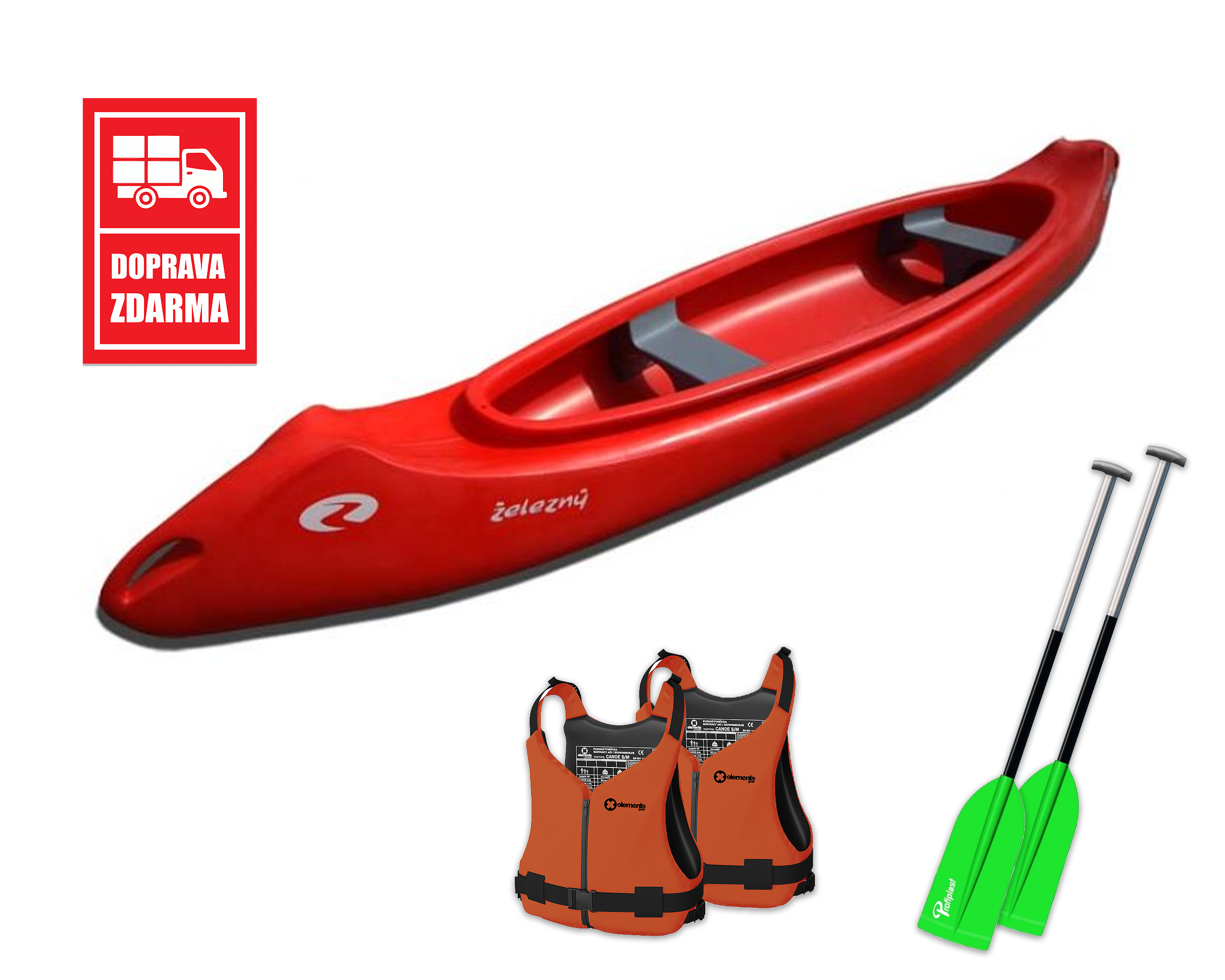 Výhodný SET! V ceně: kánoe Samba 4.5 + 2x pádlo Profiplast Kano + 2x vesta EG Canoe + doprava a tričko WE ZDARMA!