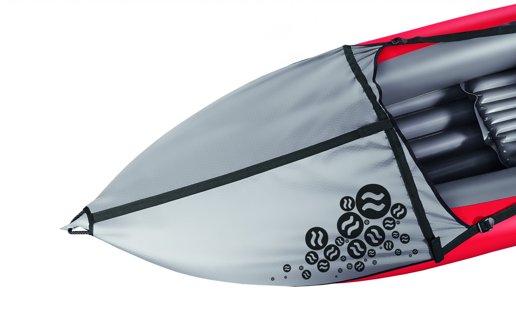 - Přídavná přední paluba chrání před přelitím vody přes špici a tím zvyšuje uživatelský komfort při jízdě, např. na moři.