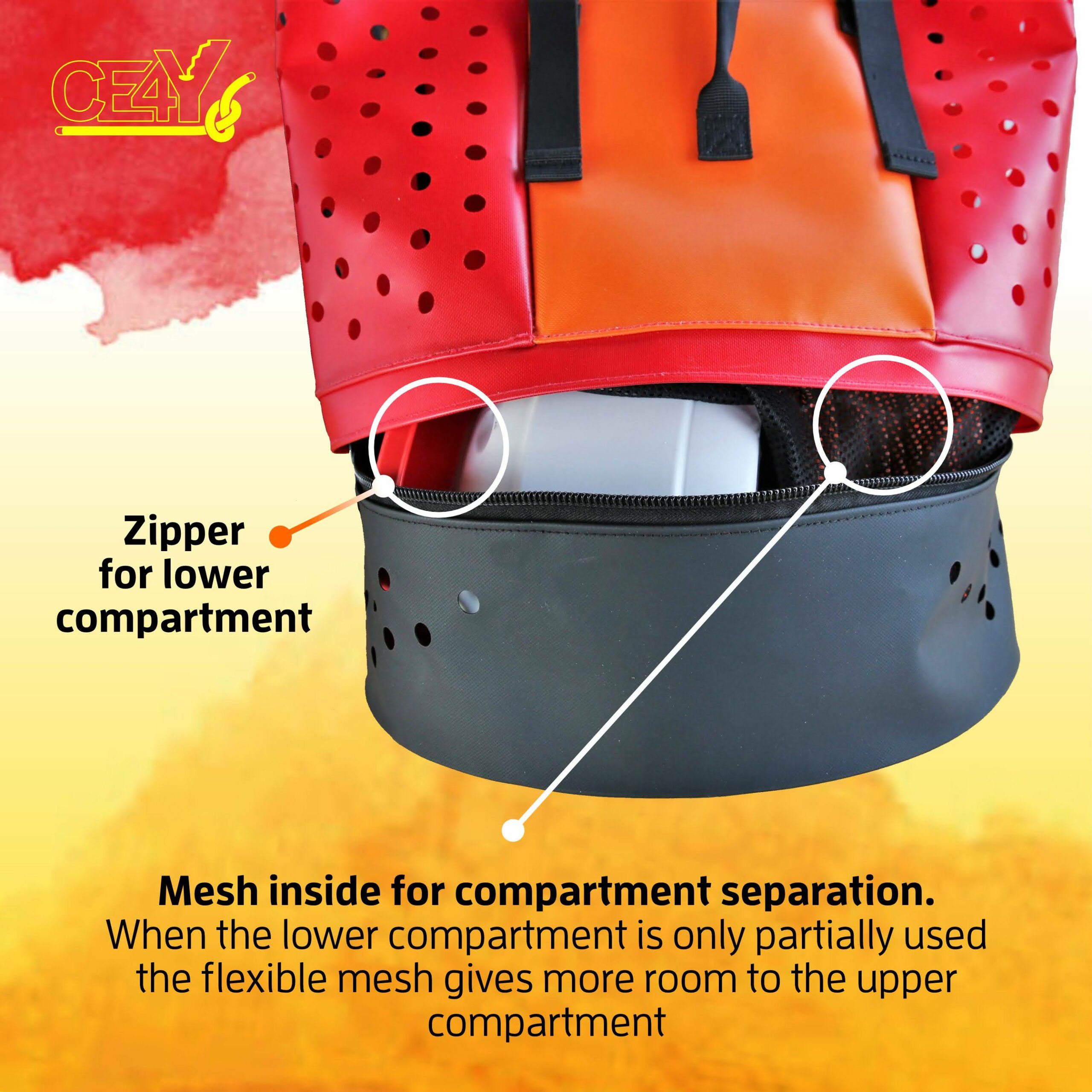 - Díky svým výrazným barvám je batoh snadno viditelný i ve vodě a zvyšuje tak bezpečnost.