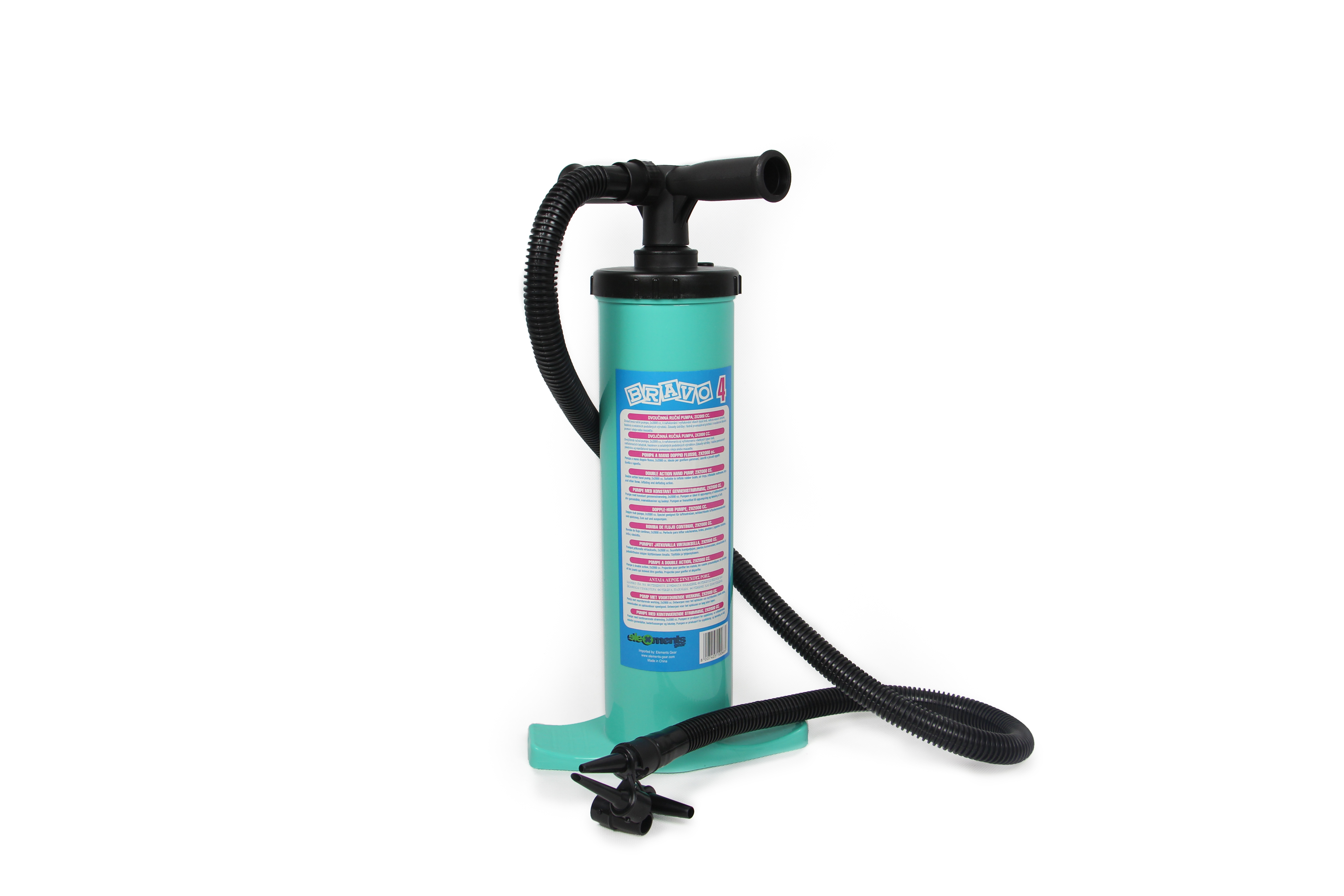 - Ruční dvojčinná pumpa o objemu 4 litry (2x 2000 cc.).