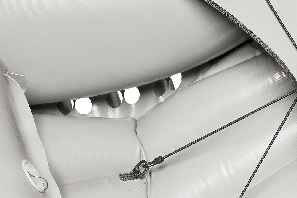 NITRILON® je třívrstvý materiál s PES tkaninou a nánosy kaučukových směsí – vysoce odolný proti oděru, UV záření i chemikáliím. CR fólie (oděruvzdorná fólie na dně) je speciální vrstva chránící trup před opotřebením na kamenitém podkladu a při častém nasazení v půjčovnách. Výrazně zvyšuje životnost a provozní spolehlivost.