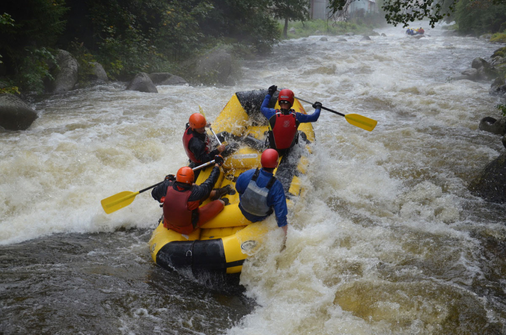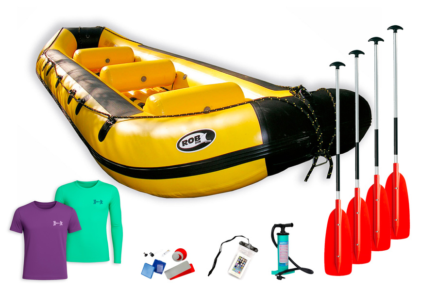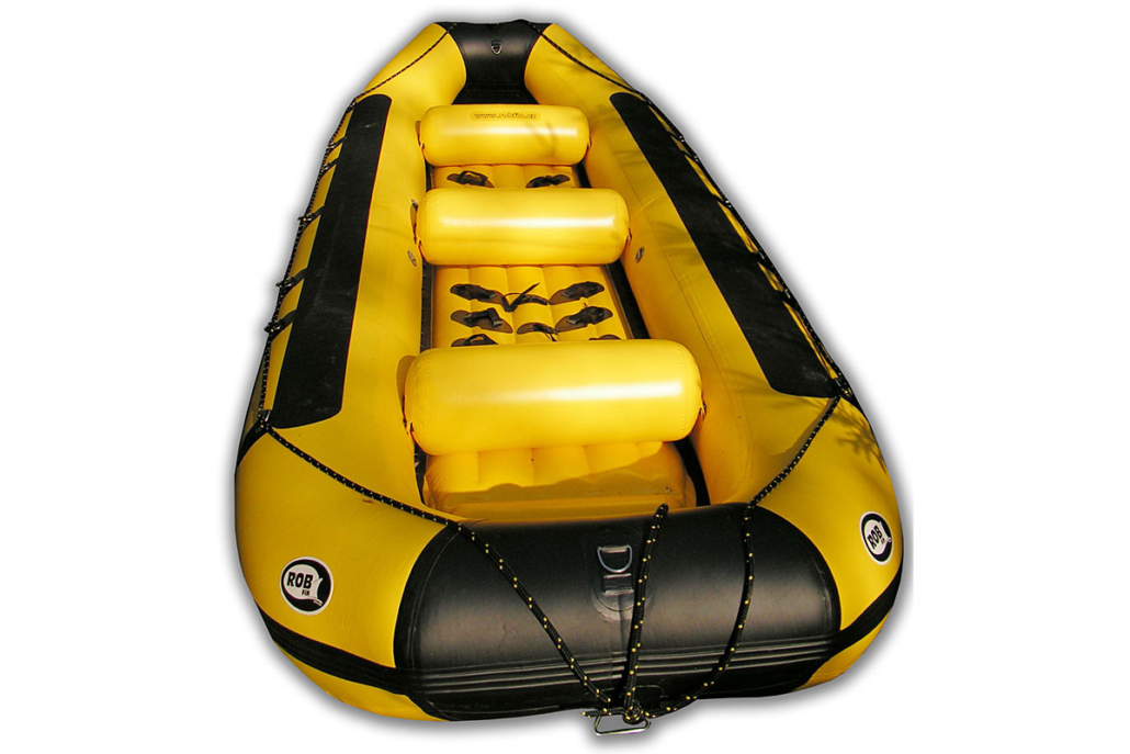 - Raft: ROBfin HOBIT 515 – extra prostorný dvanáctimístný raft se samovylévacím dnem a protioděrovými výztuhami dna.