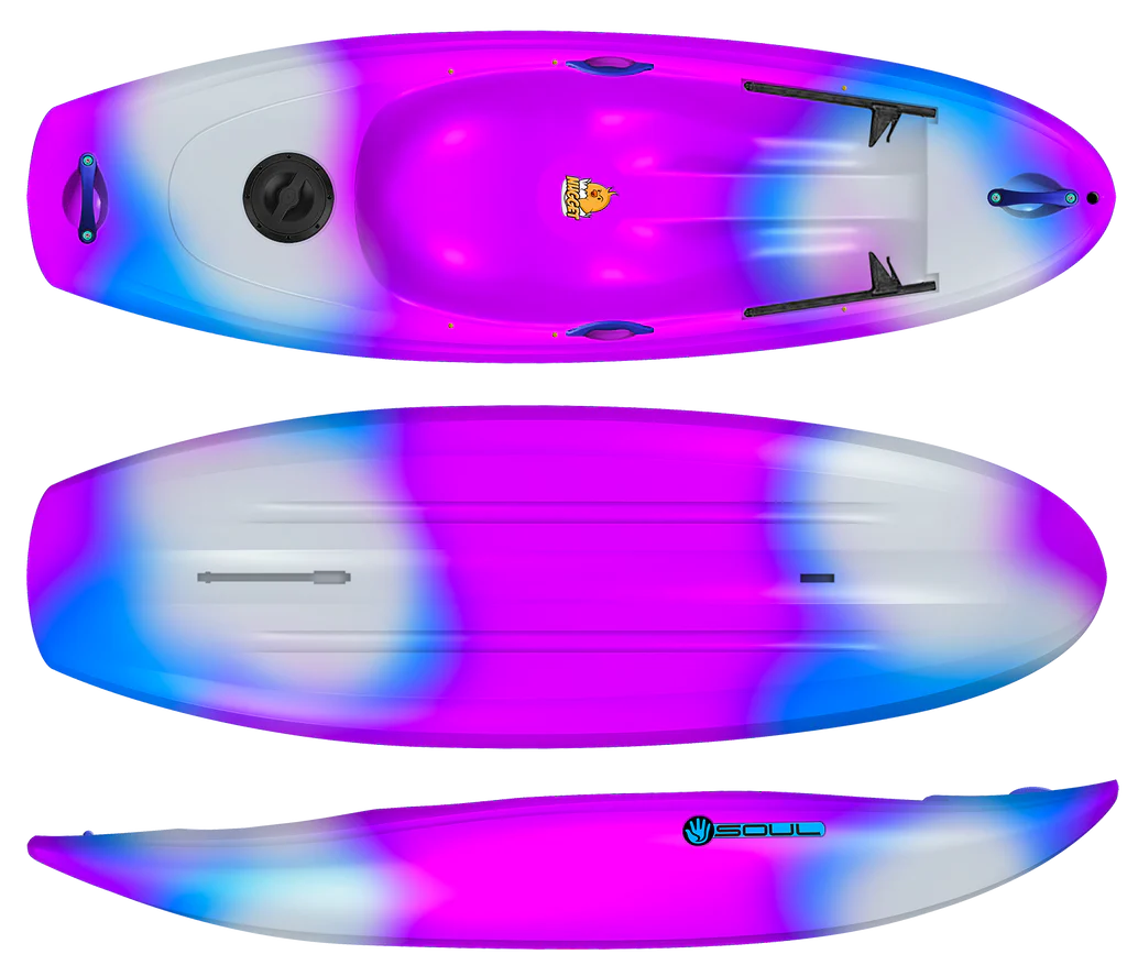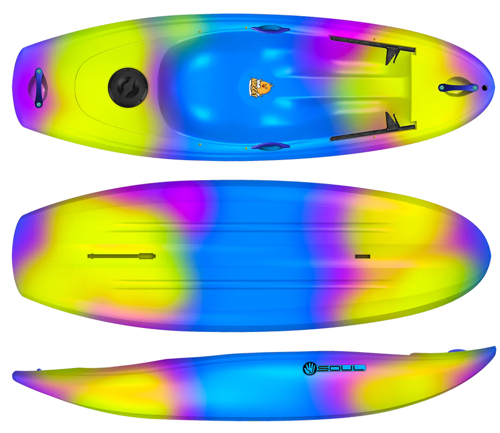 Soul Nugget Deluxe je dětský sit on top kajak v plné výbavě, určený pro snadné seznámení dětí s řekami. Díky širokému rockeru a vysokému objemu poskytuje stabilitu a snadné pádlování, zatímco skládací skeg umožňuje použití na klidné vodě. Dodáván s pádlem, přepravním kolečkem a dalšími doplňky.