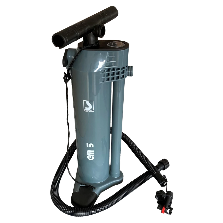 SCOPREGA GM5 je vysoce účinná ruční pumpa s možností přepnutí mezi dvojčinným a jednočinným režimem. Díky konstrukci z recyklovaných plastů a hliníkové vnitřní trubce CIRCAL® nabízí nízkou hmotnost, kompaktní rozměry a šetrnost k životnímu prostředí. Je ideální pro vodáky, kteří hledají spolehlivé a skladné řešení pro nafukování i vyfukování lodí.