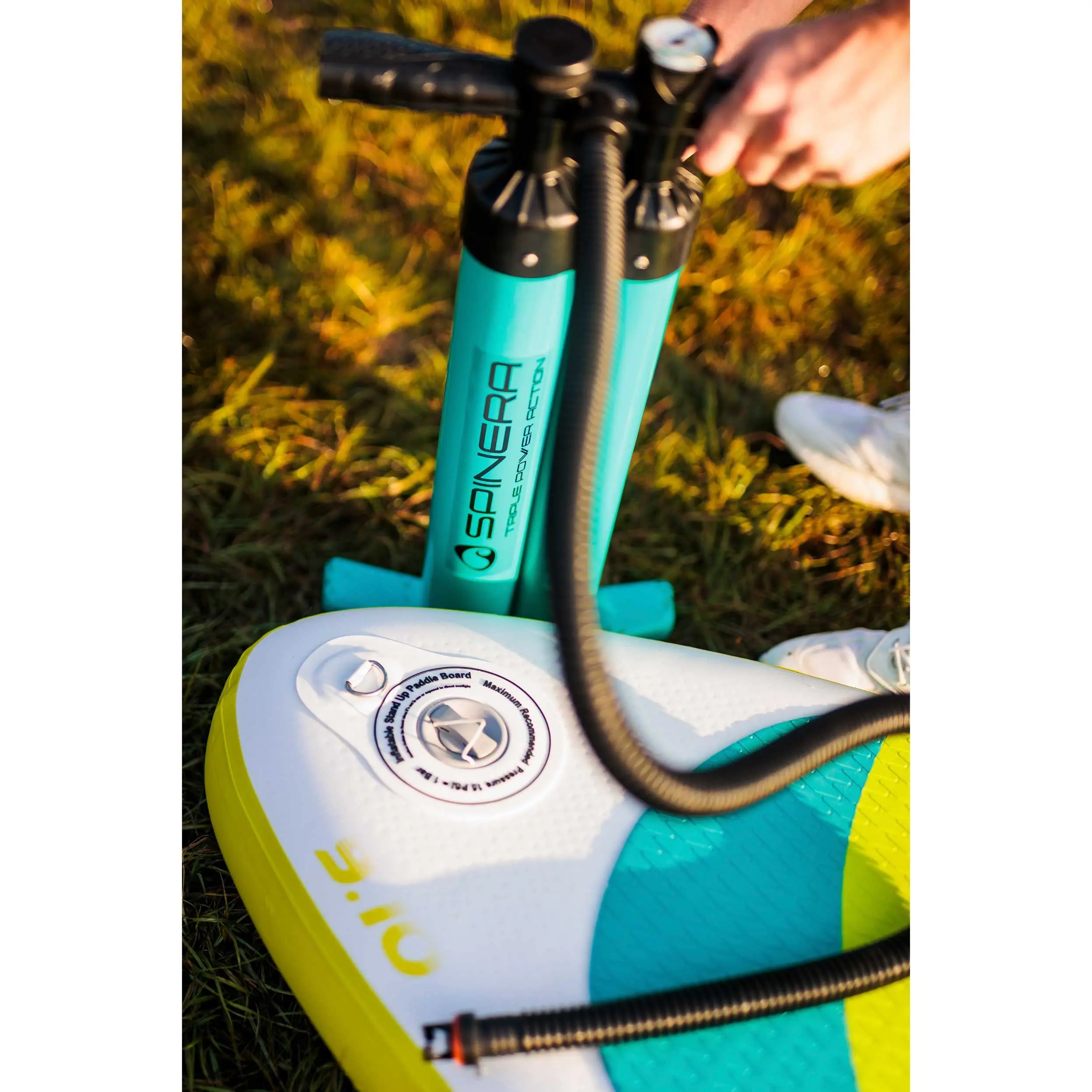 Spinera Triple Power Action je vysokotlaká ruční pumpa určená pro nafukovací paddleboardy a kajaky. Díky třírežimovému systému umožňuje rychlé, efektivní a komfortní nafukování s minimální námahou i při dosažení tlaku až 29 PSI.