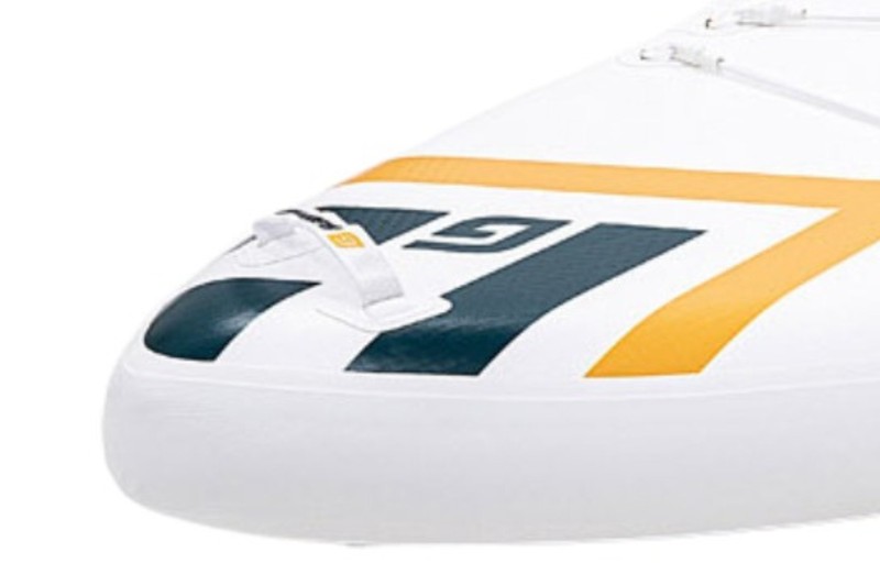 Model Gladiator River 11'0" má širší trup (34") pro extrémní stabilitu v proudu a špičatý nos, který umožňuje lépe prorážet vodní proud. Tloušťka 15 cm a výtlak 330 l zajišťují dostatečný vztlak pro těžší jezdce nebo výbavu. Unikátní je systém 4 napevno lepených bočních ploutviček doplněný o odnímatelnou US-box touring finu, což výrazně zvyšuje tracking a kontrolu v peřejích. Díky kombinaci tuhosti a šířky je paddleboard mimořádně stabilní a dobře ovladatelný i při náhlých změnách směru v rychlé vodě.