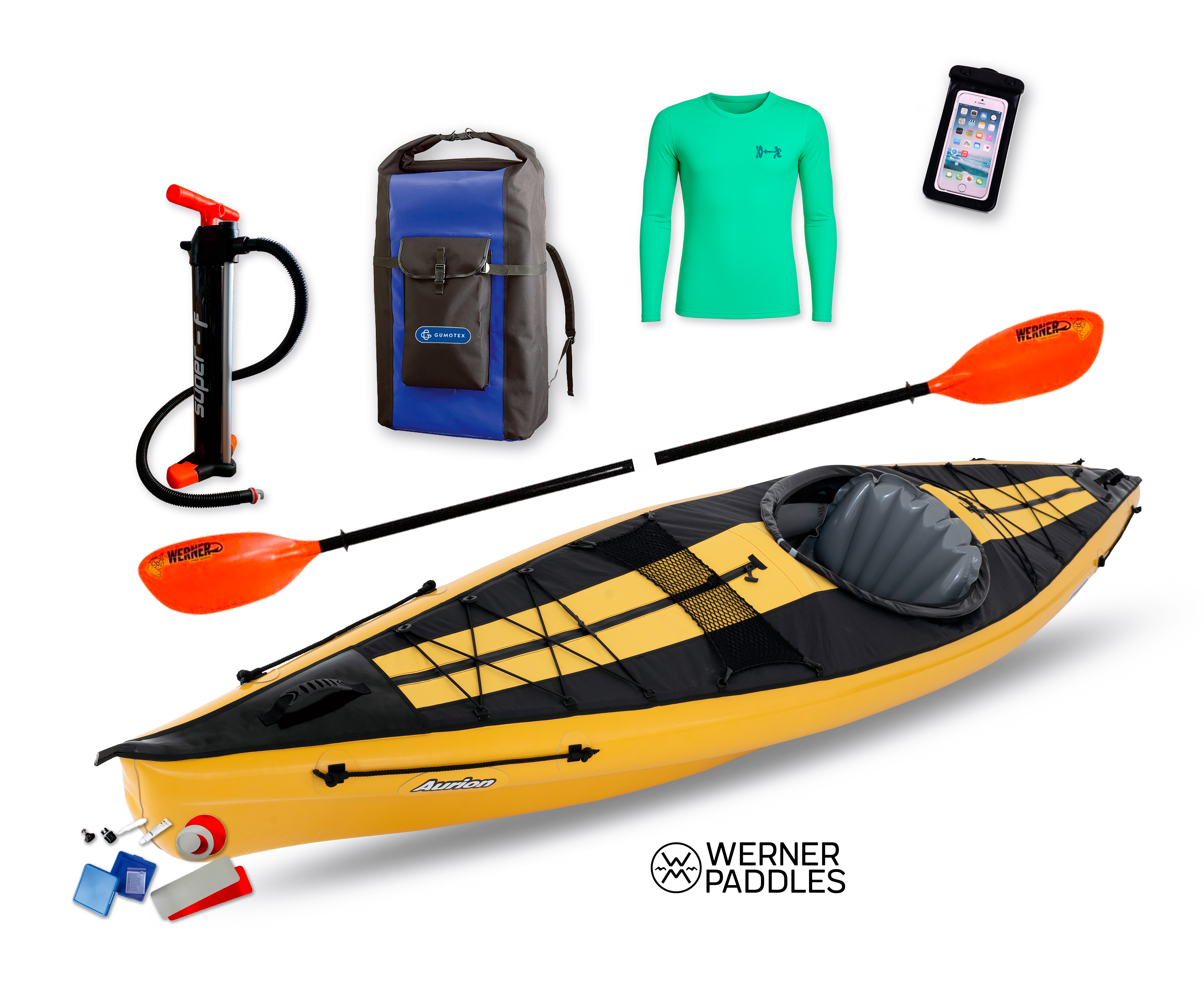 Obsah SETU I.: 1x Nafukovací kajak Gumotex Aurion • 2x Pádlo Werner Skagit 2pc Leverlock • 1x Pumpa Scoprega SUPER-F • 1x Vodotěsný obal na mobil EG Flow • 2x Funkční triko (model dle dostupnosti) • 1x Dárkový poukaz na 500 Kč / 20 EUR • 1x Přívěšek Elements C-ring