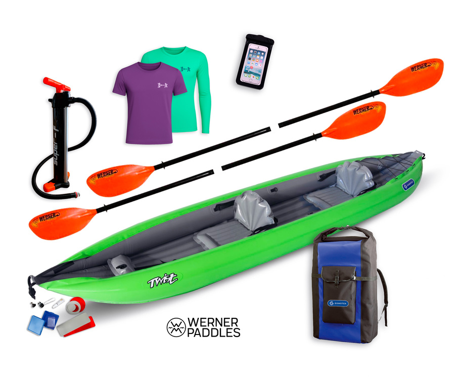 Hledáte lehký a stabilní kajak pro dva, který zvládne i sólo plavbu, za bezkonkurenční cenu? Zvýhodněný SET I. s kajakem GUMOTEX TWIST 2/1 nabízí neuvěřitelný poměr mezi váhou (pouze 13 kg) a nosností 180 kg. Díky variabilnímu systému sedaček se plně přizpůsobí vašim potřebám na dovolené. V tomto setu získáte nejen univerzální loď z odolného Nitrilonu®, ale i profesionální pádla Werner, výkonnou pumpu, 5letou záruku a exkluzivní servisní balíček.