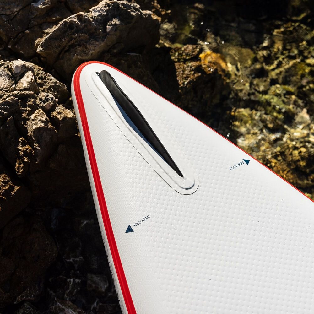 Paddleboard Hyper také obsahuje nový systém uchycení nákladu s plochými gumičkami RED STRAP™ a frézovaný neklouzavý pad s DIAMOND vzorem. V zadní části padu je zvýšená hrana Kick-pad pro oporu zadní nohy při otočkách. D-ringy na palubě paddleboardu umožňují připojení kajakové sedačky (není součástí balení).
