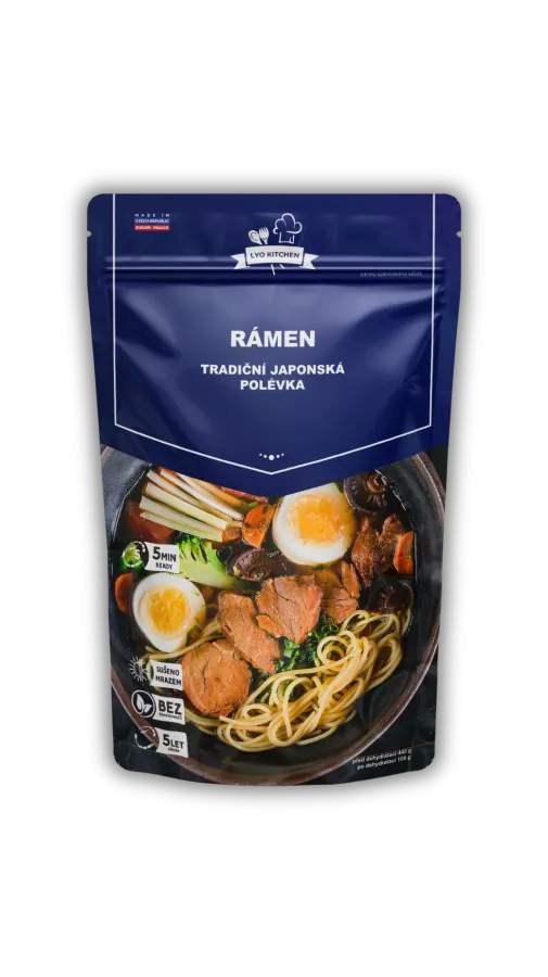 Lyo Ramen – Vychutnejte si vydatný japonský Ramen kdekoliv a kdykoliv. Ramen je hlavním jídlem a rozhodně Vás zasytí a potěší chuťové buňky. Díky šetrnému sušení mrazem si zachovává své nutriční hodnoty i bohatou chuť – bez konzervantů a chemie, přesně tak, jak ji máme rádi.
