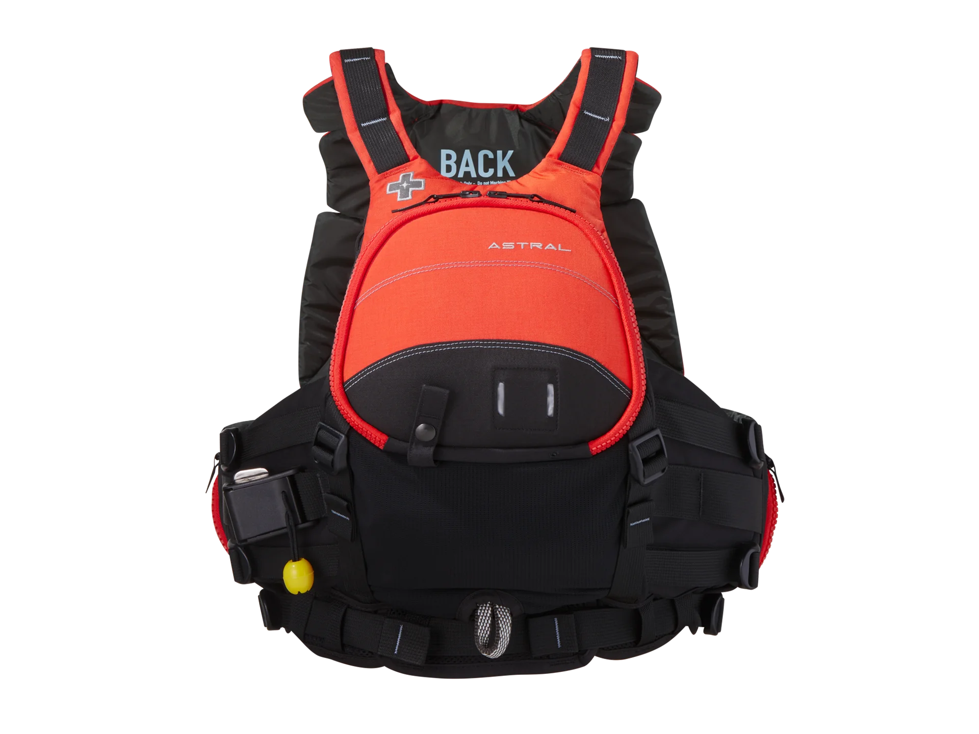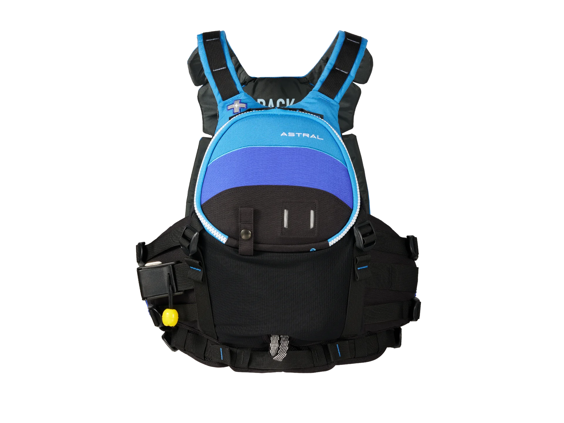 Astral Green Jacket je vybaven řadou vychytaných kapes a přihrádek pro snadné uložení záchranného vybavení, jako jsou smyčky, karabiny, házečky a další. Bezpečnostní prvky zahrnují popruh s ocelovým okem a oko k nouzovému přijištění. Vesta je navržena pro použití na divoké vodě, záchranářské akce, moře a paddleboarding (SUP).
