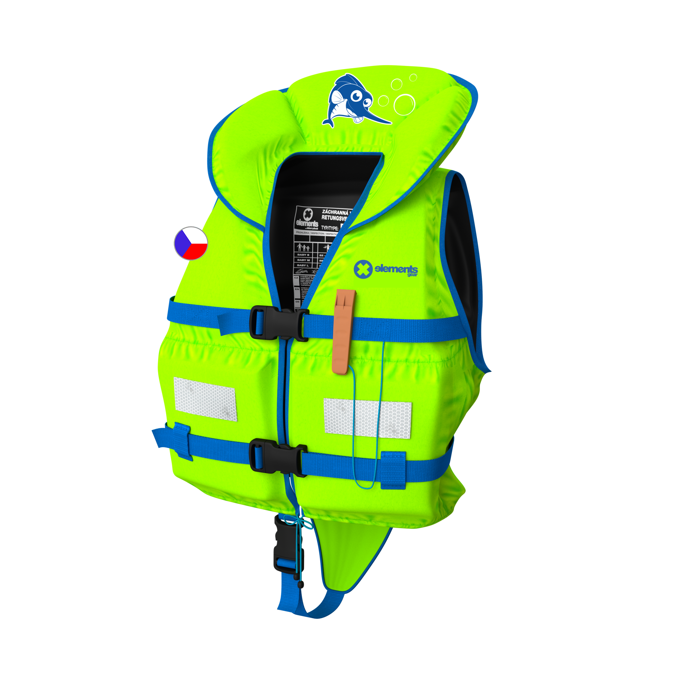 - Atestovaná dětská vesta Elements gear Baby pro neplavce s účinností 100N.