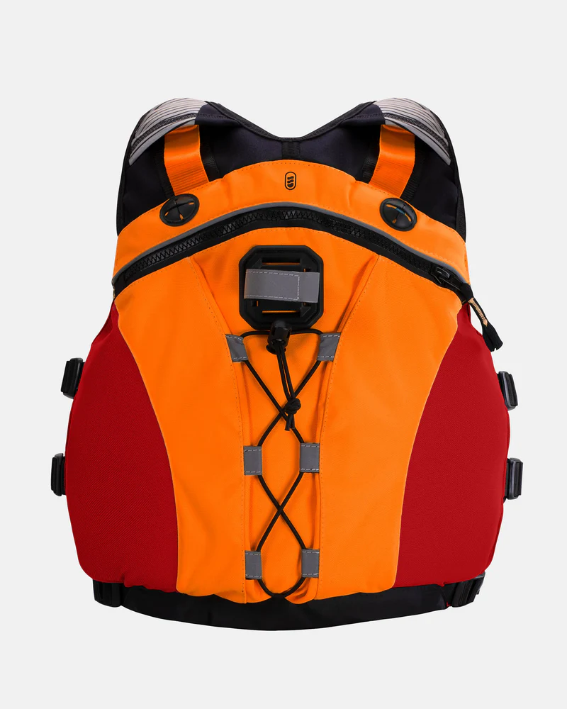 Expediční seakayaková vesta s možností přidaní camelbagu.